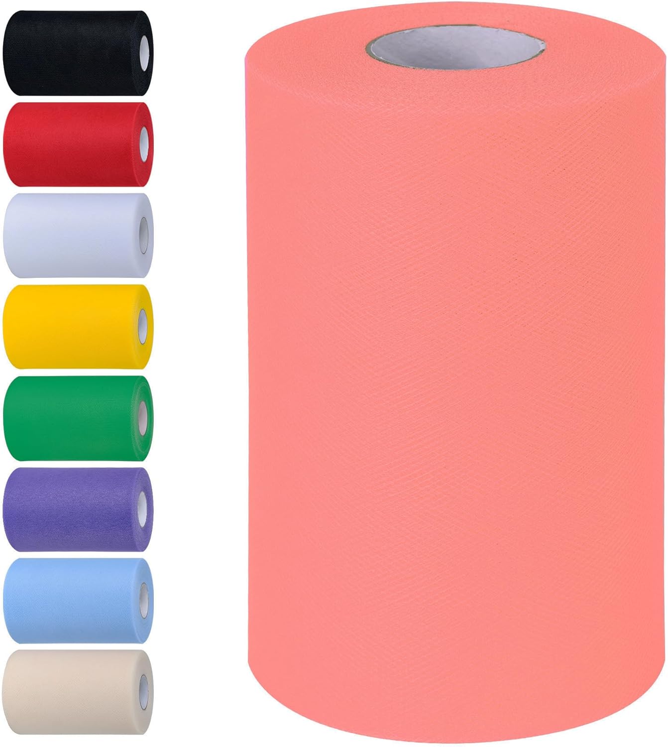 Deep Peachy Tulle Fabric Rolls 6 Inch by 100 Yards (300 feet) Tulle Roll Spool Fabric for DIY Tutu Skirt Baby Shower Birthday Party Wedding Decorations Christmas Craft Supplies (Deep Peachy)