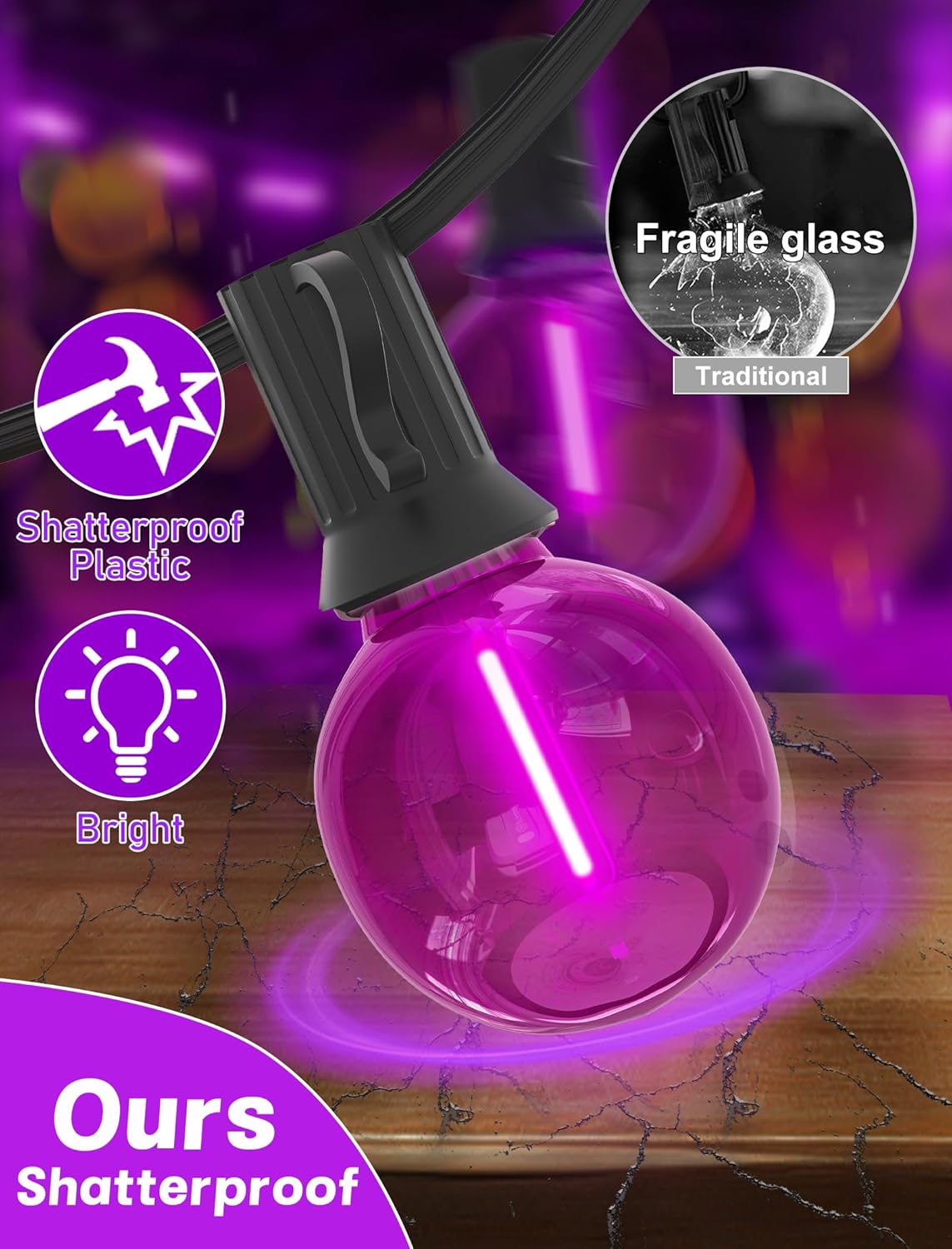 - End-to-End Expandable: Each set of purple lights string comes with male and female plugs, and can connect up to 28 sets (up to 700 bulbs). The maximum length of the light string is 700 feet, which can easily decorate various scenes and cover large areas