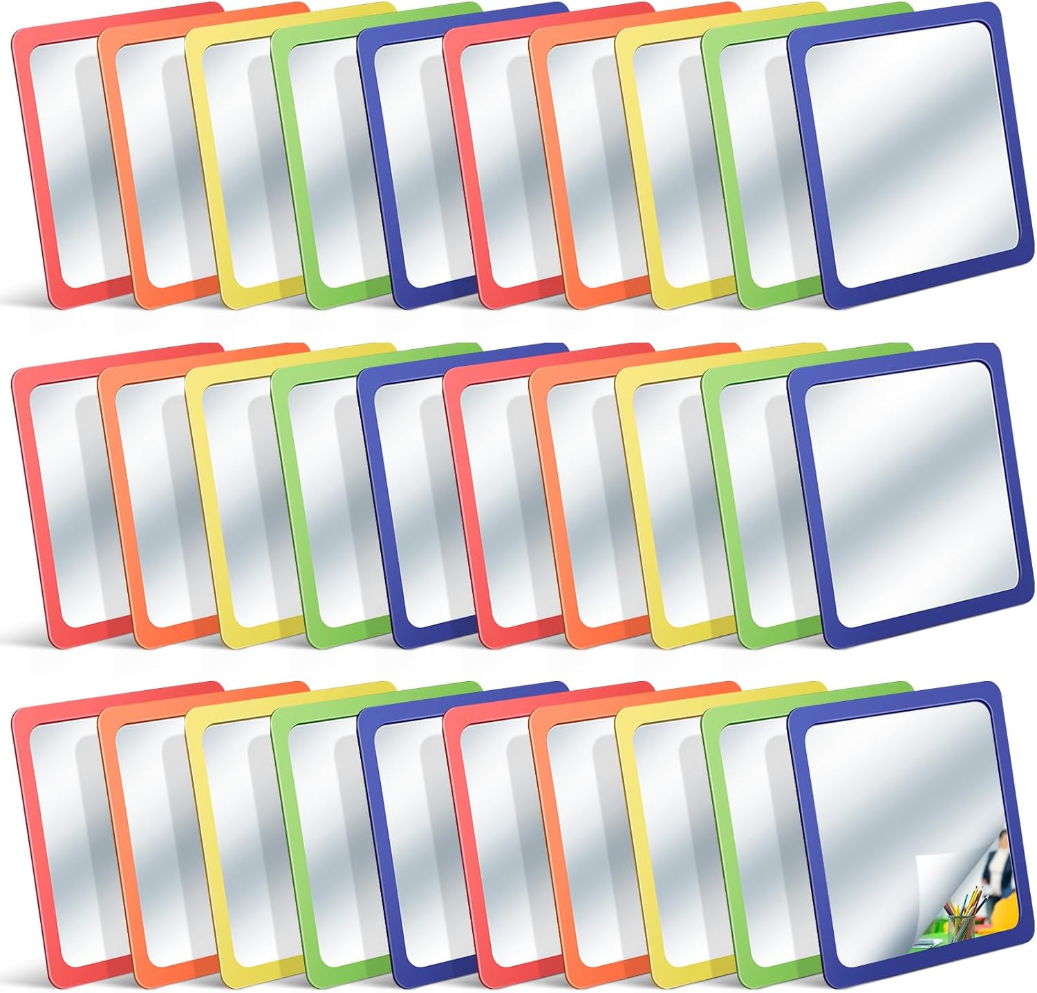 Dandat 30 Pcs Small Mirrors for Kids 6 x 6 Inch Square Shatter Proof Reflector Toddler Glass Plastic Reflector for Classroom DIY Craft Preschool Facial Expression (Fulgent Colors)