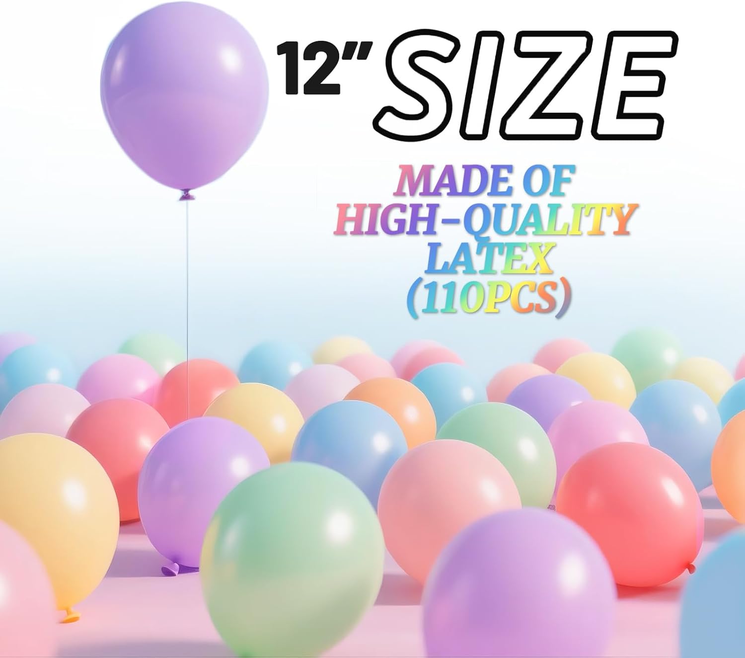110pcs Pastel Balloons 12 Inch, Pastel color balloons Assorted Latex Ballons for Birthday Party DecorationsBaby Shower Wedding(with 2 Ribbons).