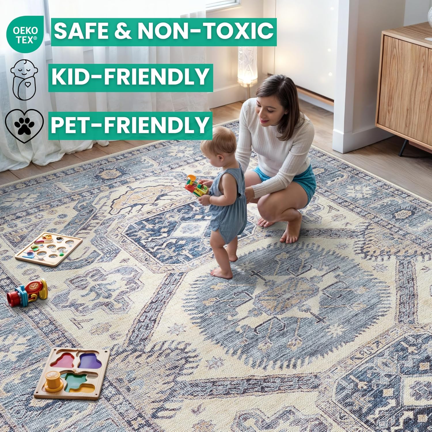 - MACHINE WASHABLE: Machine wash on delicate cycle (do not use bleach) at 85°F (30°C) and line dry or dry on air-only cycle without heat. Vacuum regularly and spot clean small stains. This easy to clean rug is perfect for families with kids and pets, and for high traffic areas.