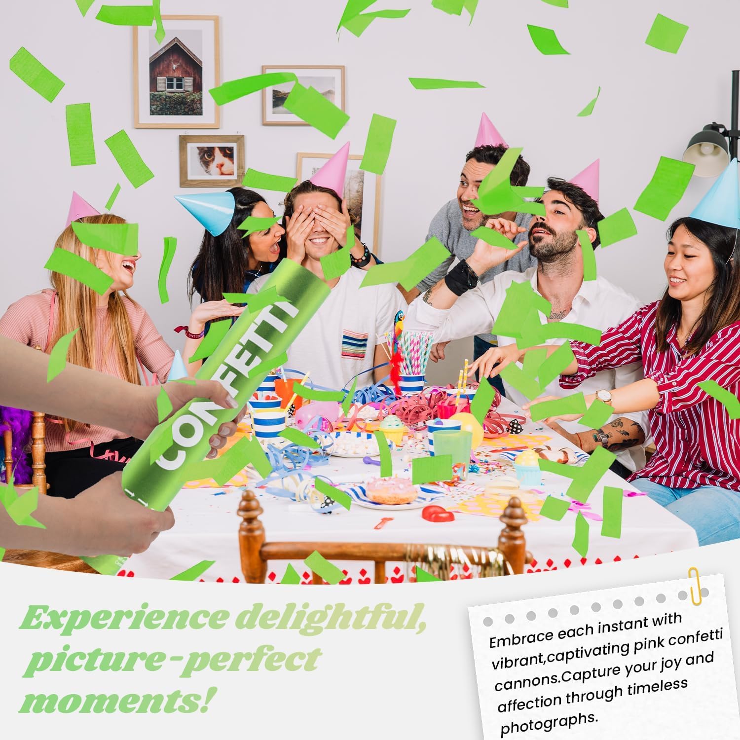 - 【Satisfaction After Sale】Make your every celebration a perfect memory with our cutes Green confetti cannon. If you're unsatisfied with our confetti poppers in any way, please let us know. Our customer service team will take care of all issues promptly and efficiently to make sure that you're fully satisfied.