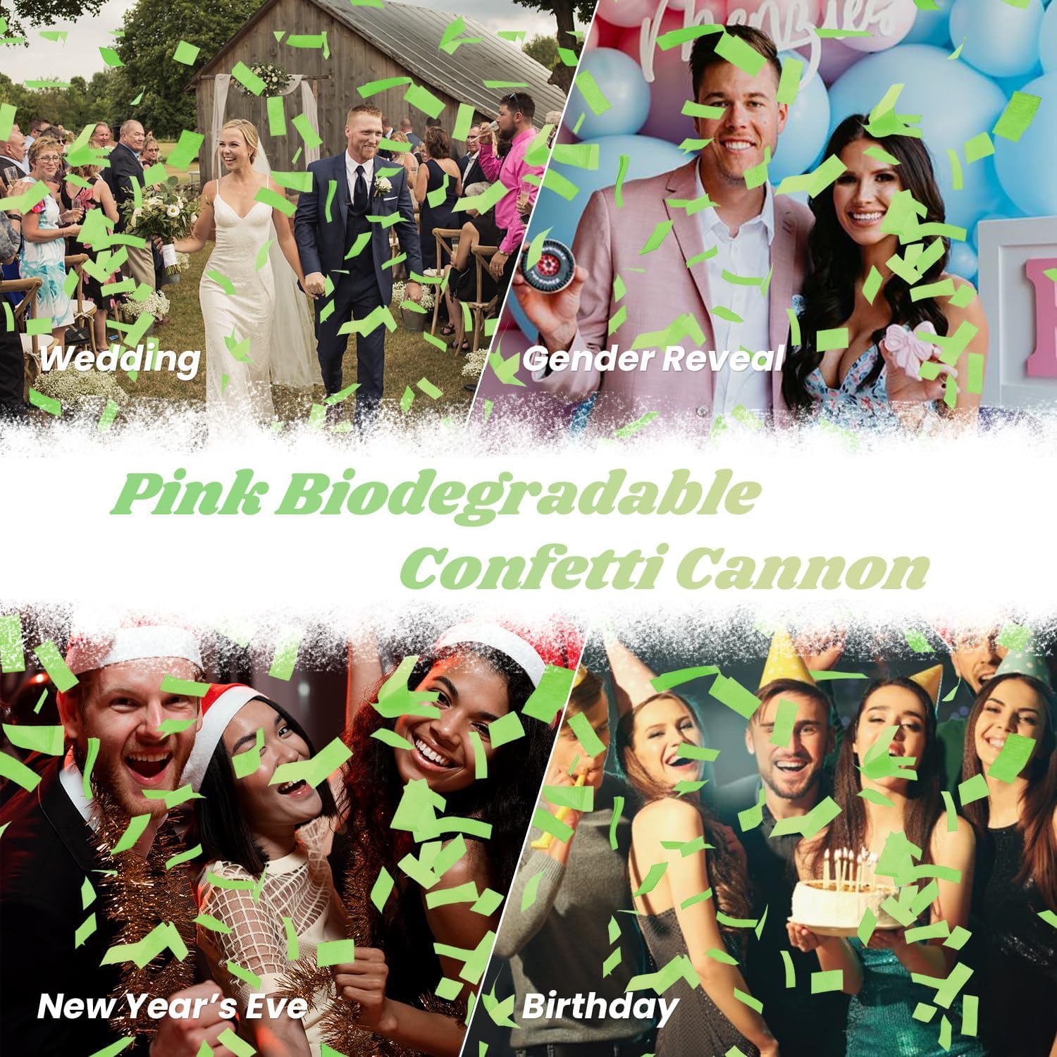 - 【Biodegradable Confetti Cannon】These Green confetti poppers are Biodegradable which means environmentally friendly confetti poppers! Great for Bachelorette Party/ Bridal Shower/ Wedding Anniversary / Engagement Party/Valentine’s Day/Graduation Party/ Birthday Celebration/ Christmas Party or New Years Celebration Party, all events you want to celebrate.