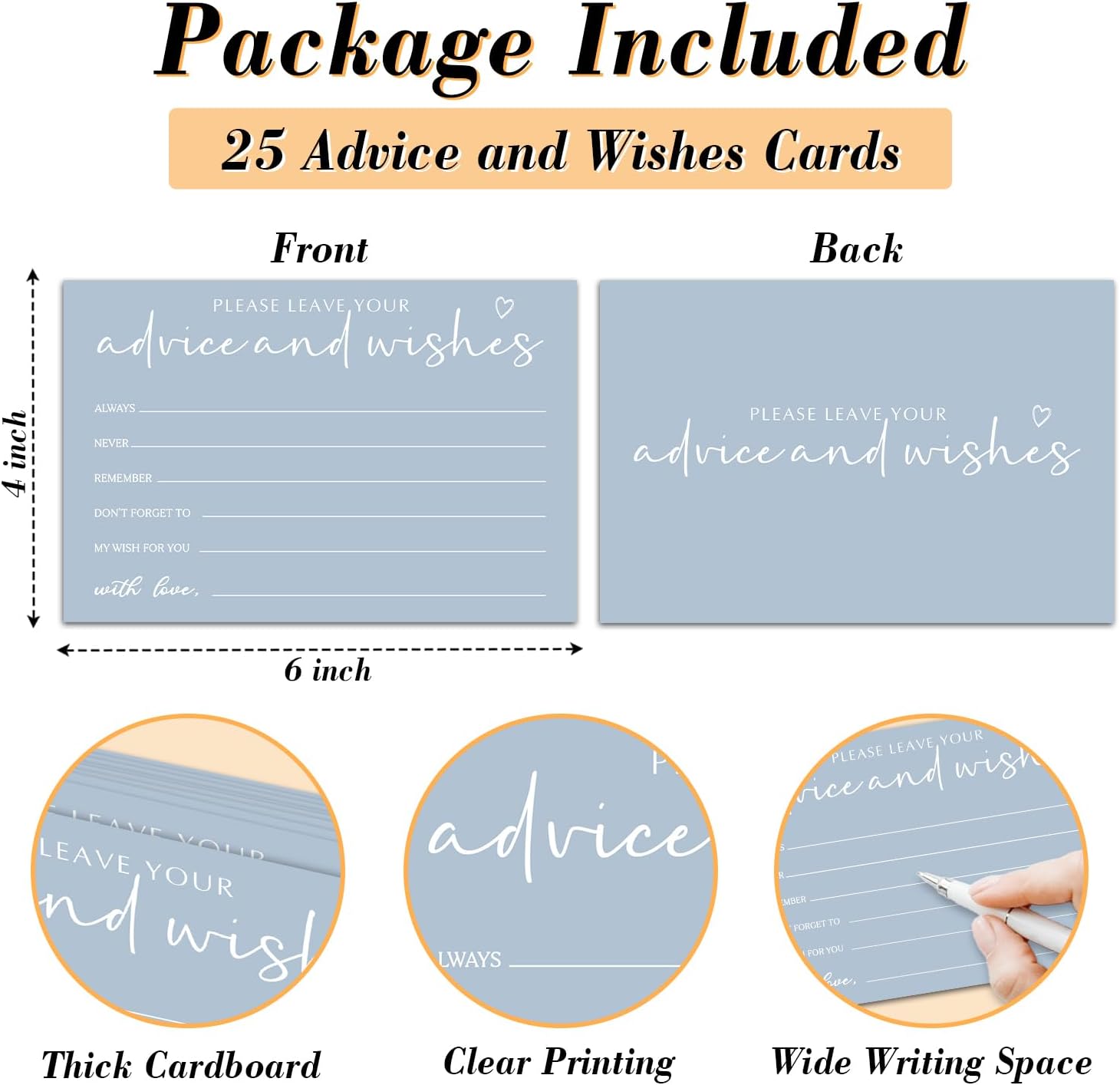 25 Advice and Wishes Cards, Minimalism Blue Fill-In Advice Cards for Bridal Shower Wedding Birthday Party Baby Shower Graduation Party, Well Wishes Card for Mr & Mrs Adults, Party Supplies -09