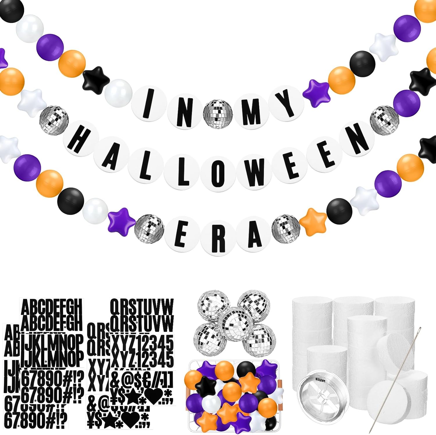 Giant Friendship Bracelet Garland Kit, DIY Birthday Banner with Letters Ball Jumbo Customizable Friendship Bracelet Decor for Halloween Christmas Wedding Party(Black, Orange, Purple)