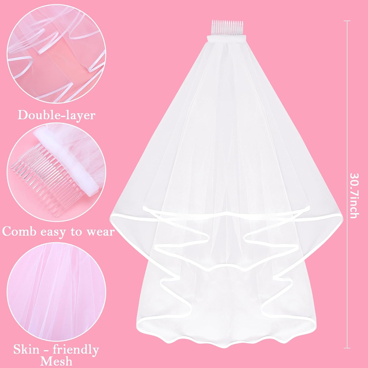 - Cute Veil: Made from soft silk cascades to a length of 30.7", with plastic comb for securing on your head, the edge of the veil is covered in white satin, adding a real touch of sophistication, and perfect length for your bachelorette or wedding.