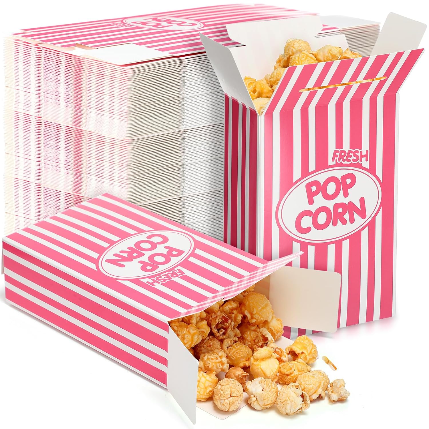 Xinnun 200 Pcs Paper Popcorn Boxes 1 oz Close Top Oil Proof Disposable Popcorn Container 6 x 4 x 2 Inch Stripes Leak Proof Popcorn Boxes for Party Movie Party Theater Night Birthday (Pink)