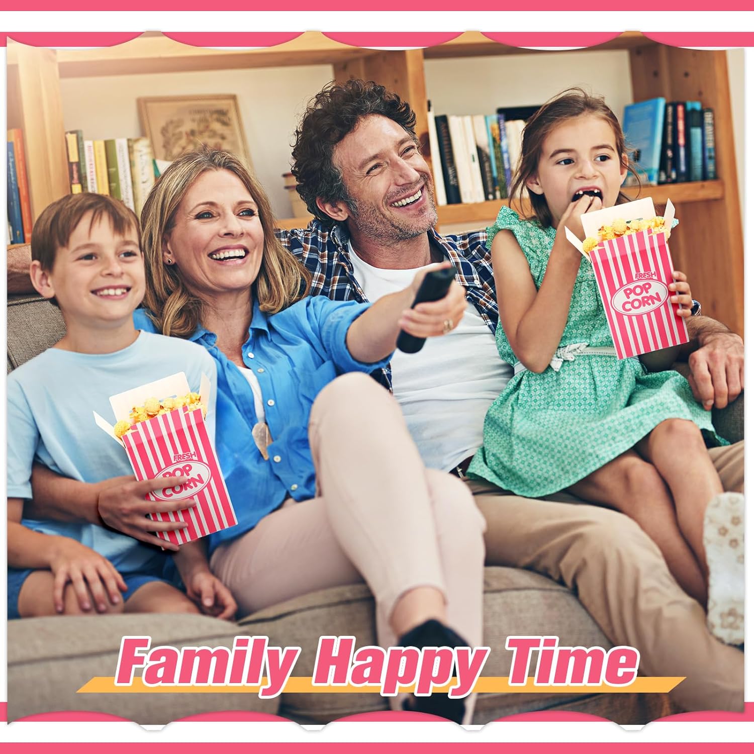 - Pink and White Striped Design: the oil proof disposable popcorn containers are designed with flat bottoms, so they can stand upright on the smooth countertops, besides the traditional red and white striped design conforms to the aesthetic standard of most people, adding joyful atmosphere