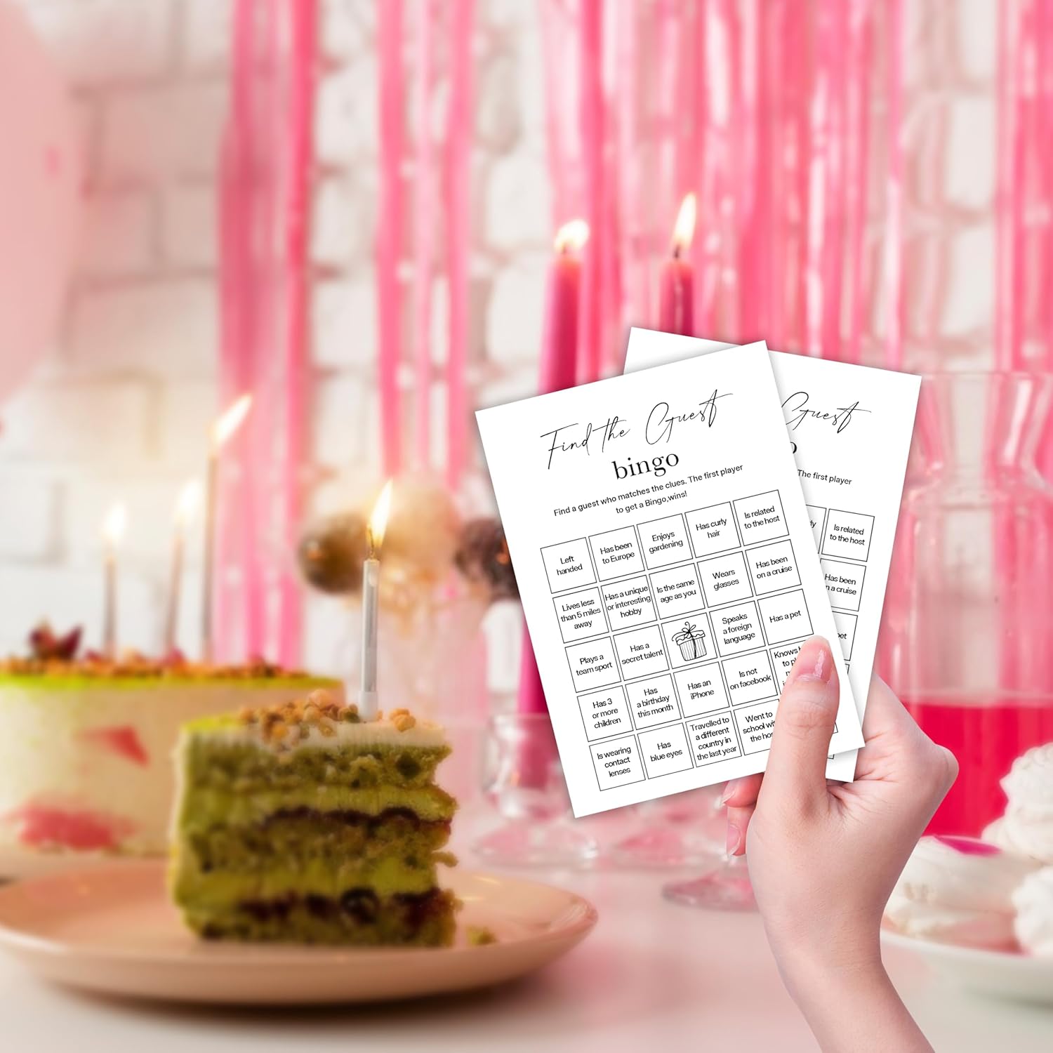 Birthday Party Games, Find The Guest Bingo, 25 Pcs Card Set for Guests, Fun Birthday Game for Teen Adults – A08