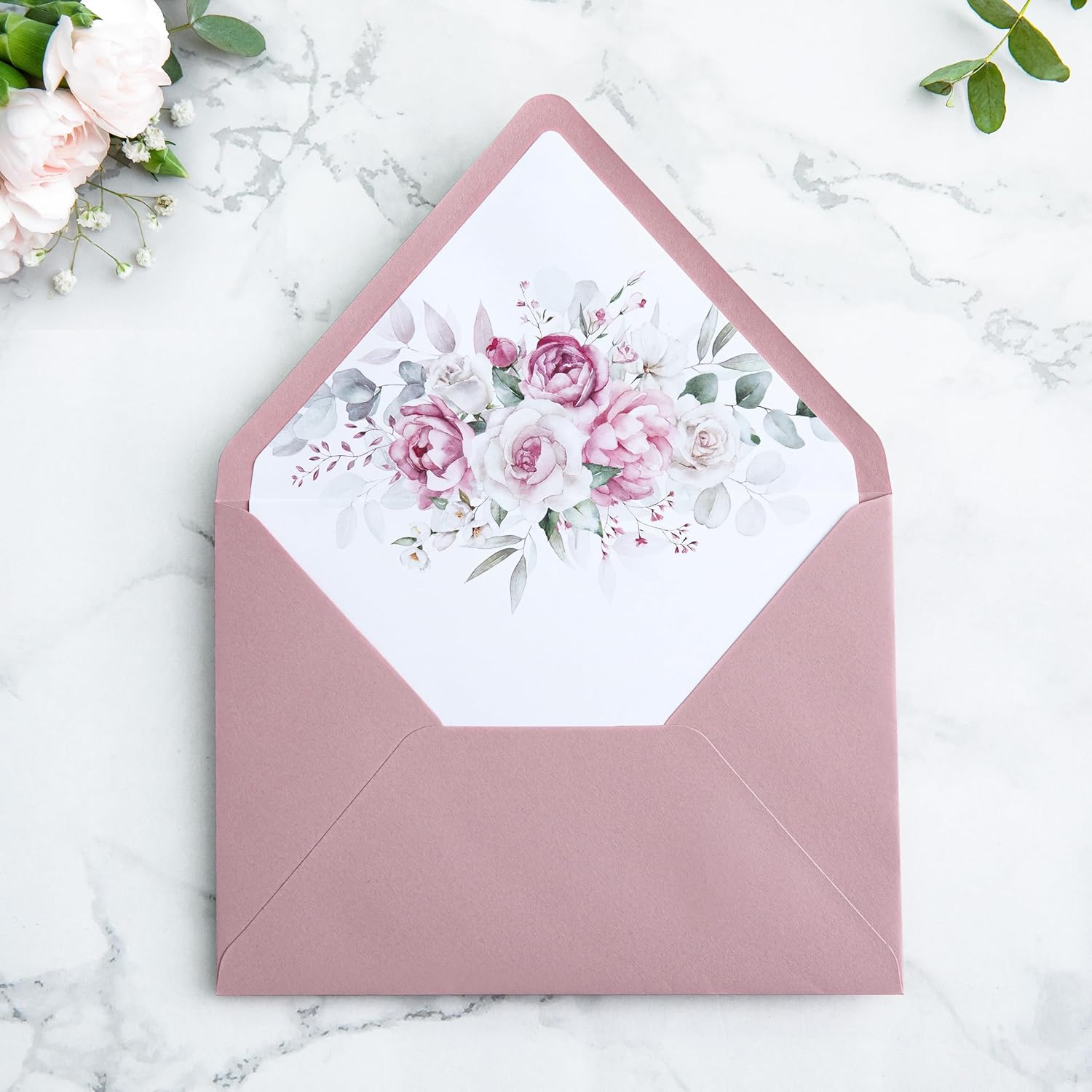 - π Color: Dusty rose a7 euro flap envelopes with flower liner. This envelope is made with a 120gsm(32lb) outer layer and a 120gsm(32lb) dusty rose flowers printed inner liner.