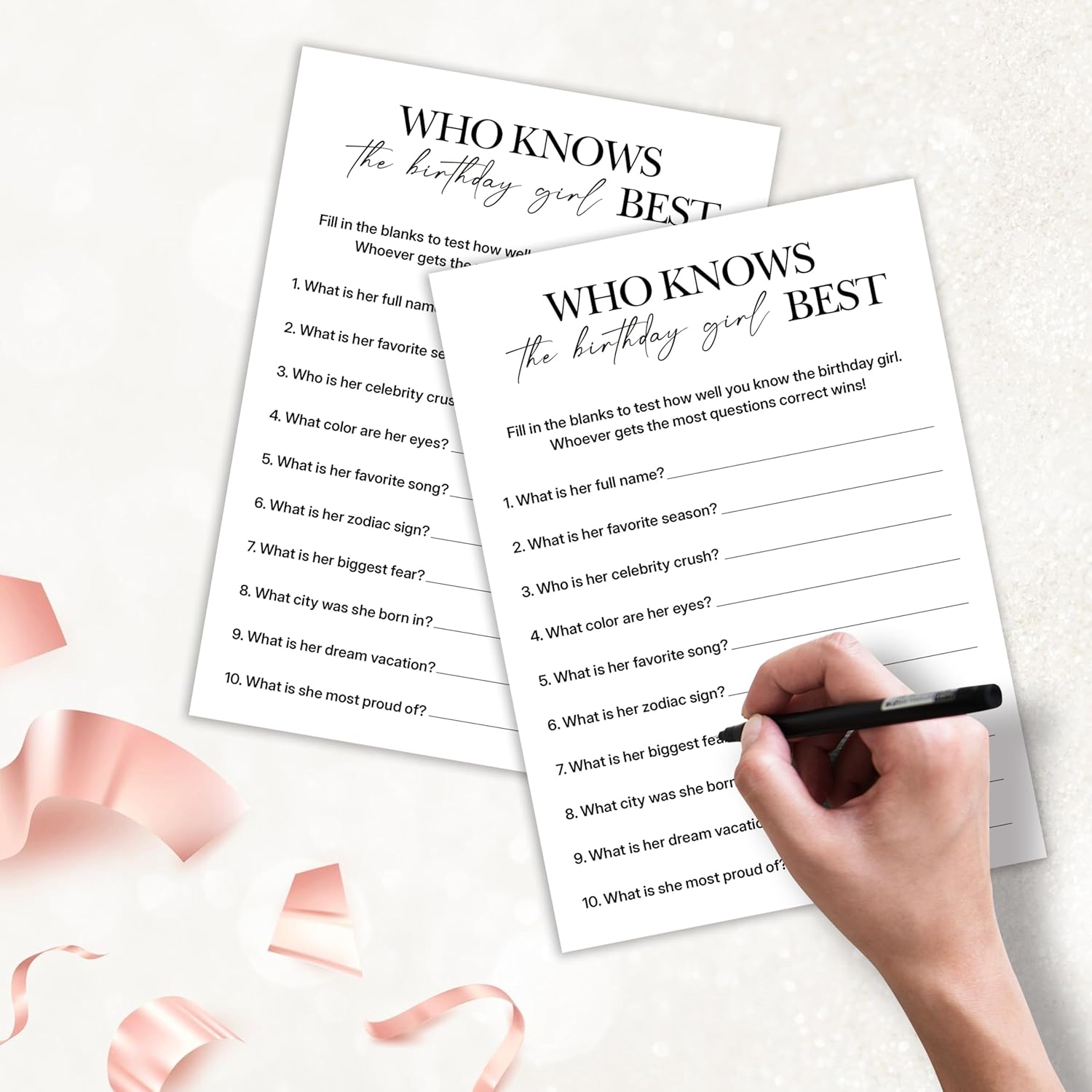 Birthday Party Games, Who Knows Her Best, 25 Pcs Card Set for Guests, Fun Birthday Game for Teen Adults – A05