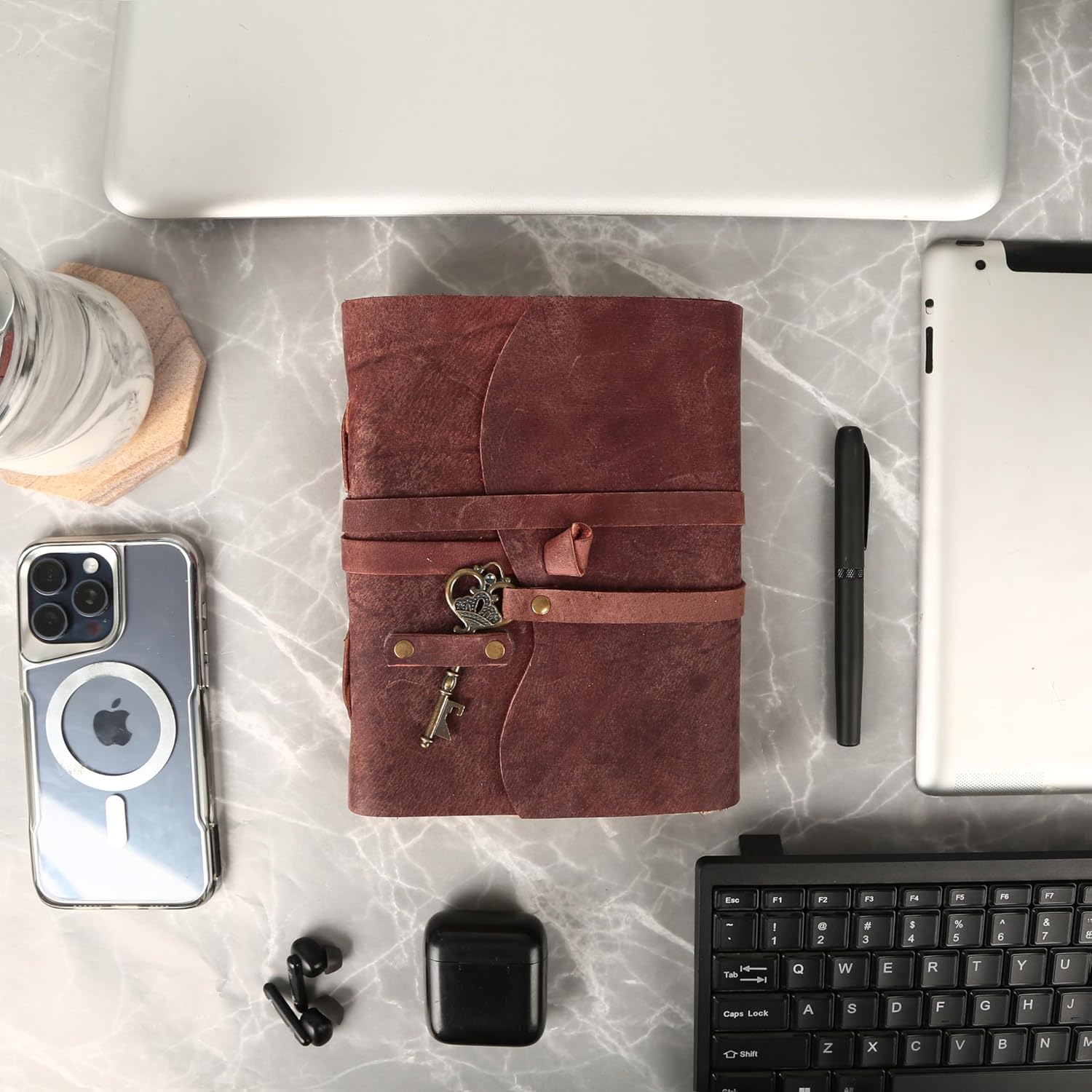 - Sturdy Binding And Vintage Key Closure - The Leather journal comes with unlined deckle edge paper. Sturdy hand-stitched binding ensures no paper is unfastened from your antique notebook. The leather-based wraparound with the vintage key keeps the journal's papers safe and secure.