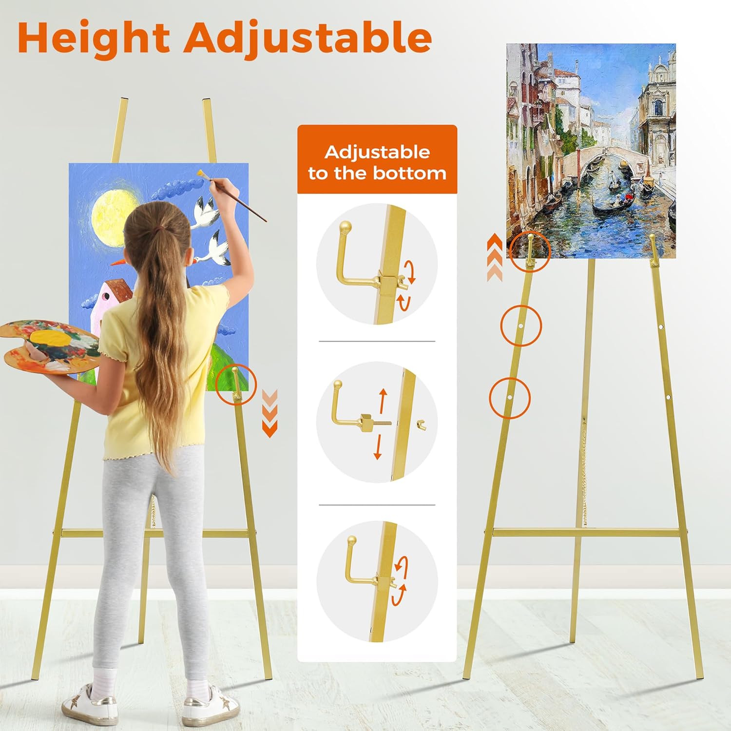 ARTASY 50" Gold Easel Stand for Wedding Signs, Posters, Portable Artist Easel for Painting Canvas, Large Display Easel for Home and Office
