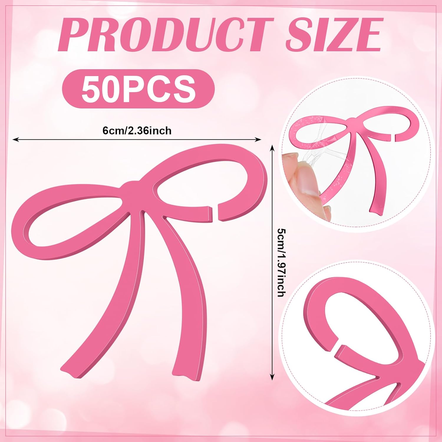 50 Pcs Bows Drink Tags Coquette Bow Wine Glass Charms Acrylic Bowknot Drink Tag for Bachelorette Birthday Wedding Coquette Tasting Party Decor Accessory(Rose Pink)