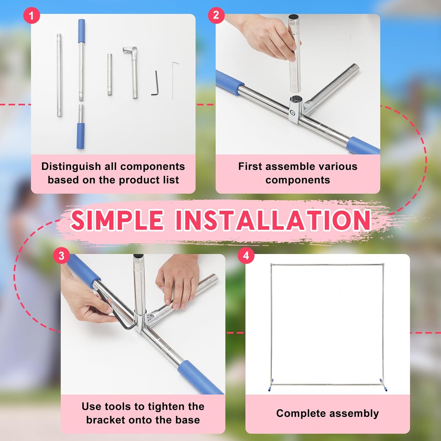 - Strong Rustproof Frame - Our wedding arch stand is made completely of stainless steel that won't rust, making it perfect for outdoor weddings. It's much stronger than regular metal stands and won't bend even with heavy decorations.