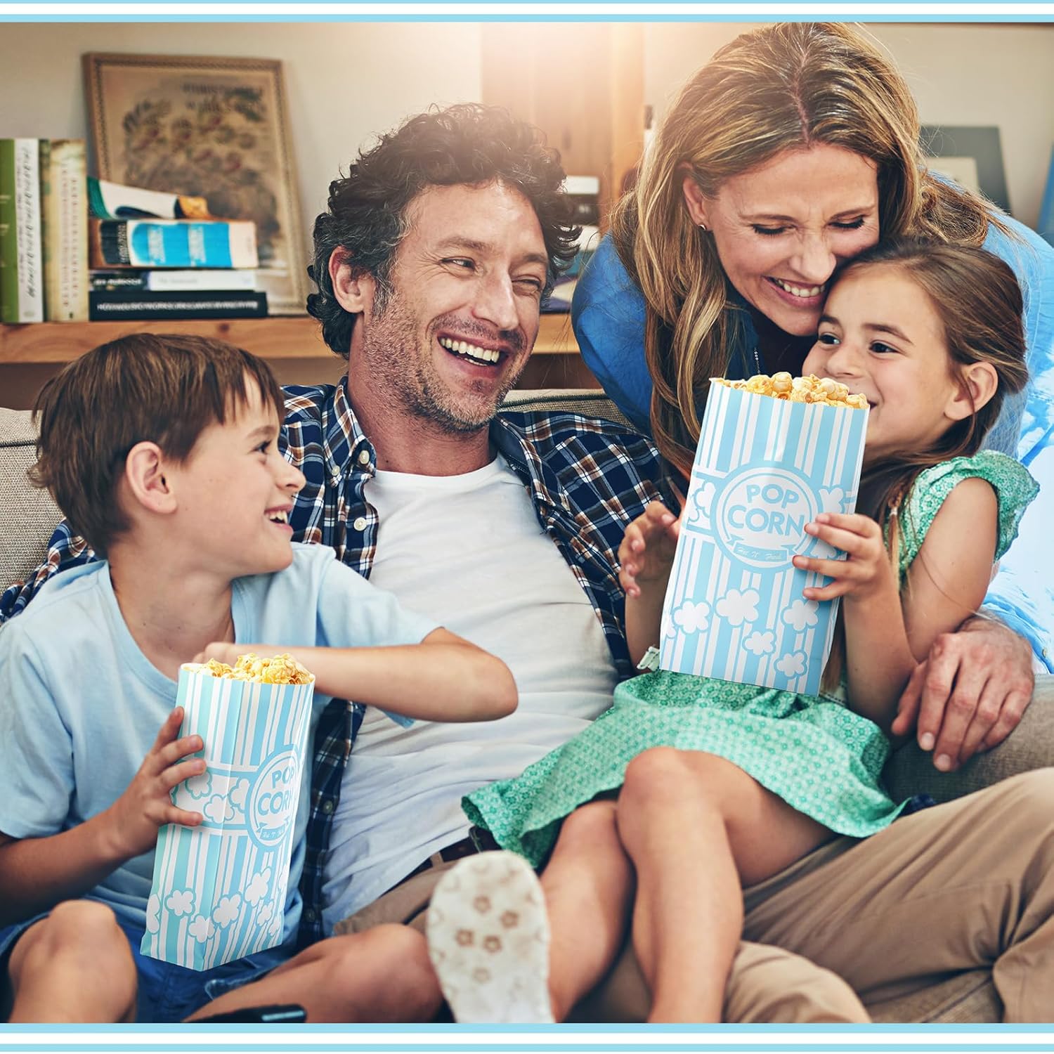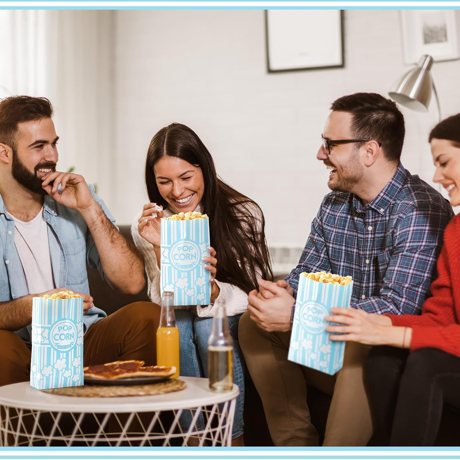 - Vintage and Resonant Appearances: the individual popcorn containers adopt classic light blue and white striped patterns and delicious popcorn patterns, which can arouse your childhood memories at first sight, creating a vintage and nostalgic atmosphere