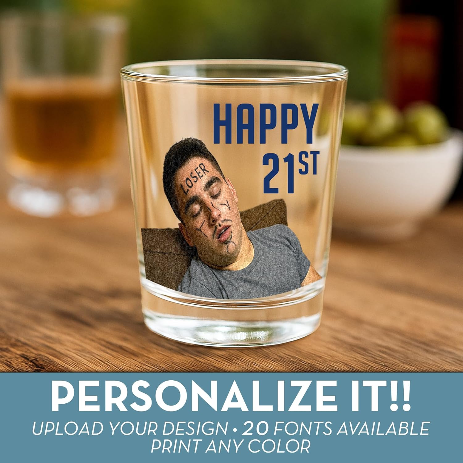 21st Birthday Custom Shot Glass 2.5oz, Personalized Picture Funny Party Favor, Customized 21st Drinking Gift, Legal Age Shot Glass, Printed Photo Gift For Son Daughter Friends