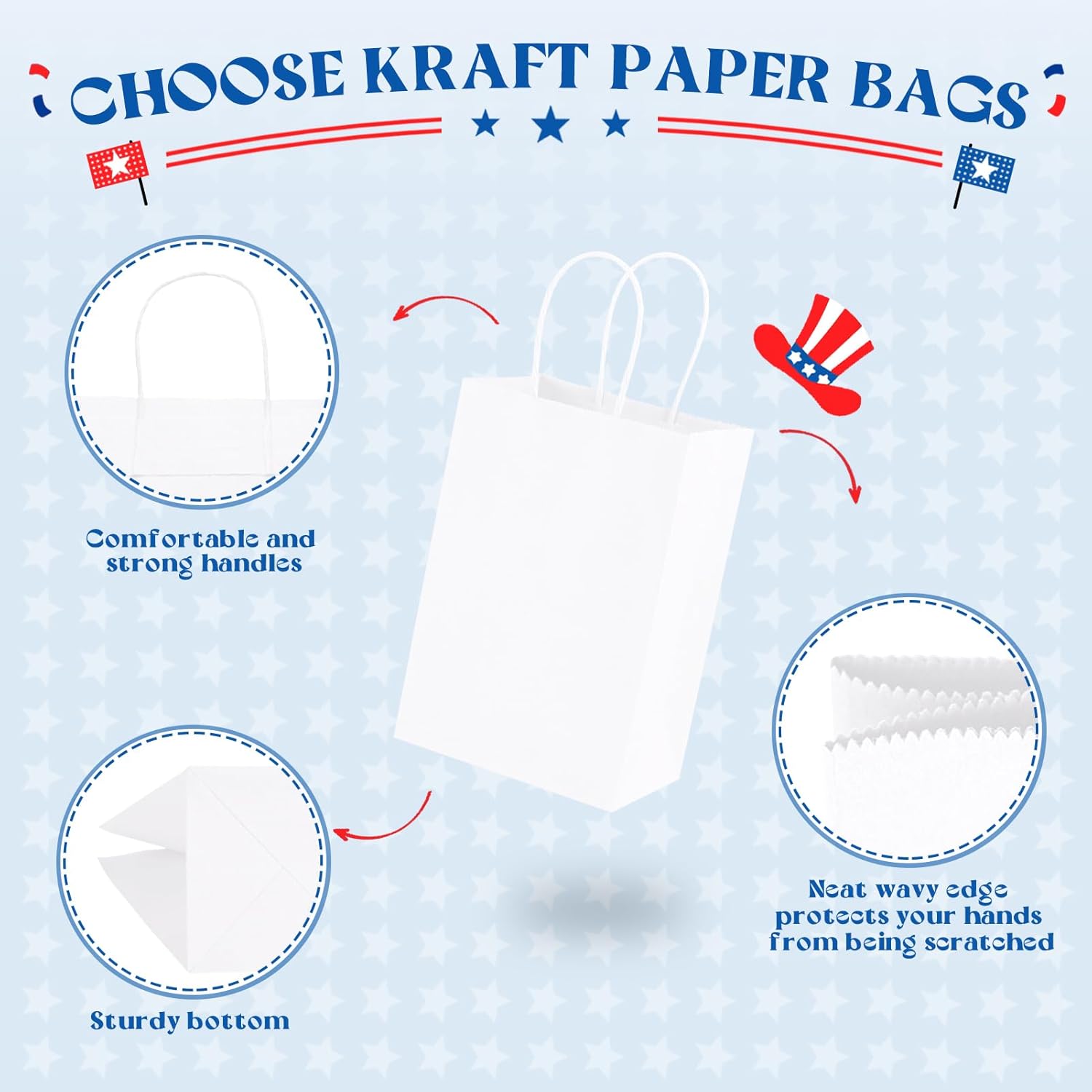 - STRONG AND DURABLE - These kraft paper gift bags have a flat square bottom and can stand up easily. Each bag is several mil thick and will not tear or rip easily. The reinforced bottom also provides extra support while you shop or carry items, ensuring that the contents will stay safe not fall through, unlike other flimsy bags. The strong braided handles give an upscale feel while making it easy to carry.