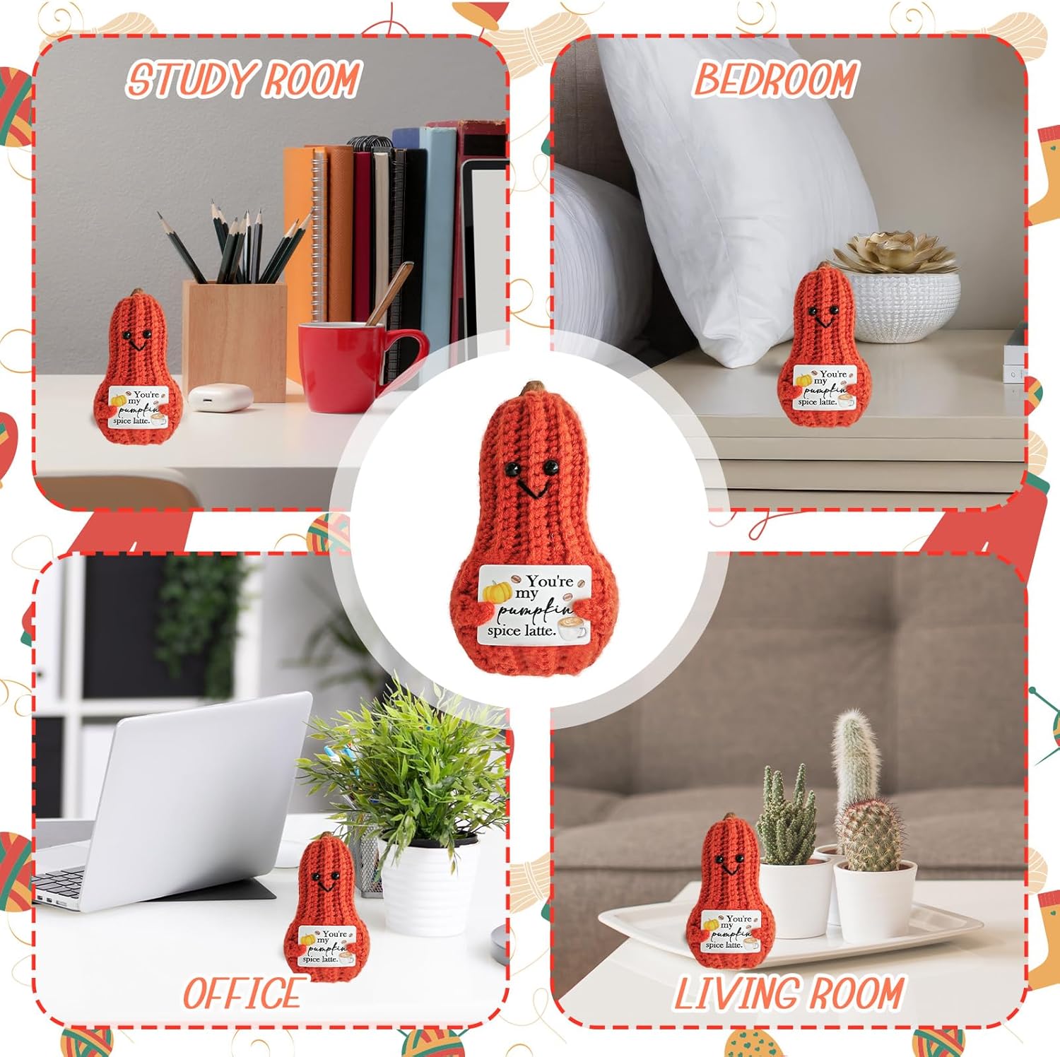 Little Reminders Emotional Support Crochet Pumpkin,Positive Crochet Pumpkin with Positive Affirmations Cards,Daughter's Gifts for Mother,Birthday and Catholic Christian Decor,Desk Decoration