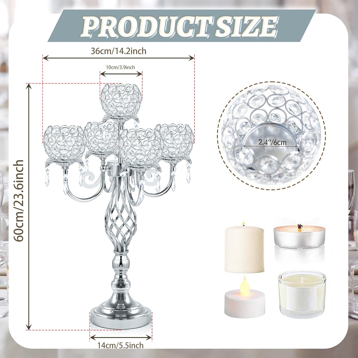 - Versatile Elegance: Ideal for Wedding,holiday dining, anniversary dinners, or restaurant VIP tables, this candelabra adds a touch of luxury and sophistication to any setting. Pair with LED tealights for a safe, 8+ hour flickering ambiance.