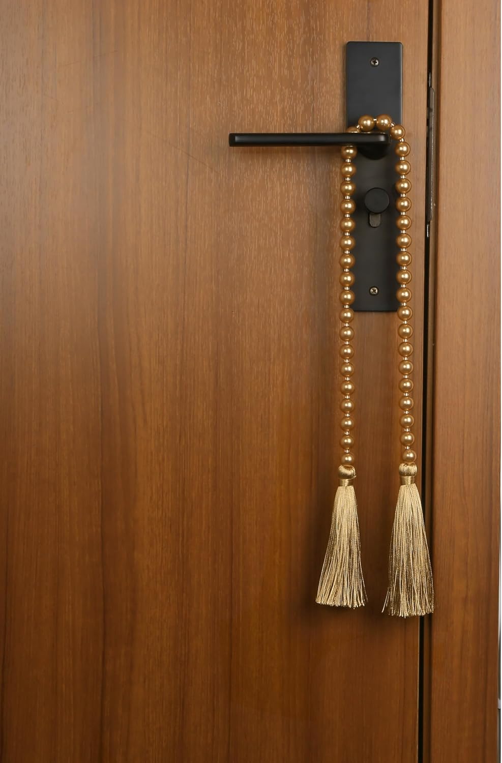 Fenghuangwu 34 Inch Pearl Glass Bead Garland with Tassels - Elegant Boho Table Decor, Fringe Wall Hanging for Wedding, Party, Farmhouse Rustic Prayer Bead Home Decoration(1 Pack,Champagne Gold)