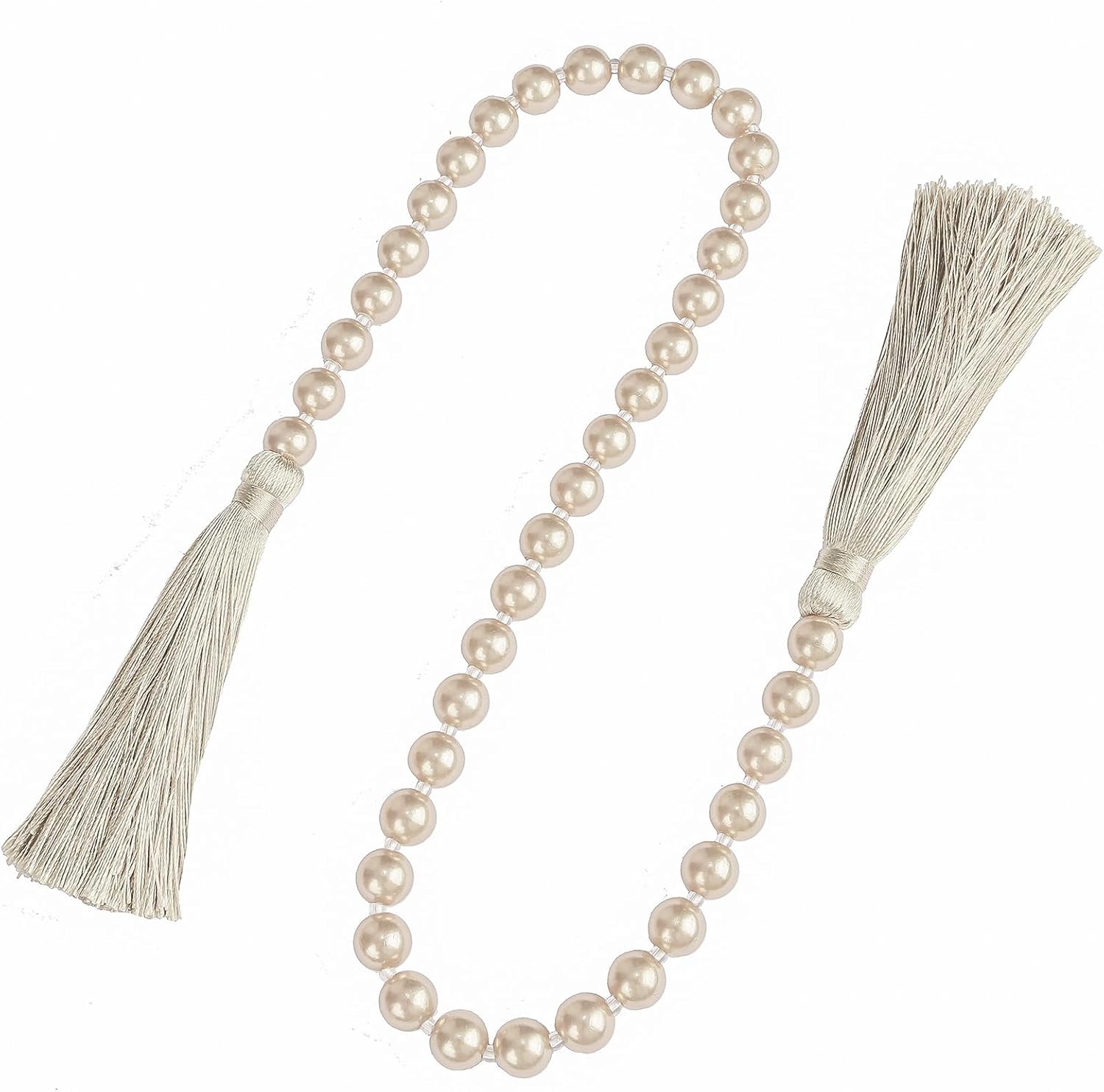 Fenghuangwu 34 Inch Pearl Glass Bead Garland with Tassels - Elegant Boho Table Decor, Fringe Wall Hanging for Wedding, Party, Farmhouse Rustic Prayer Bead Home Decoration(1 Pack,Off White)