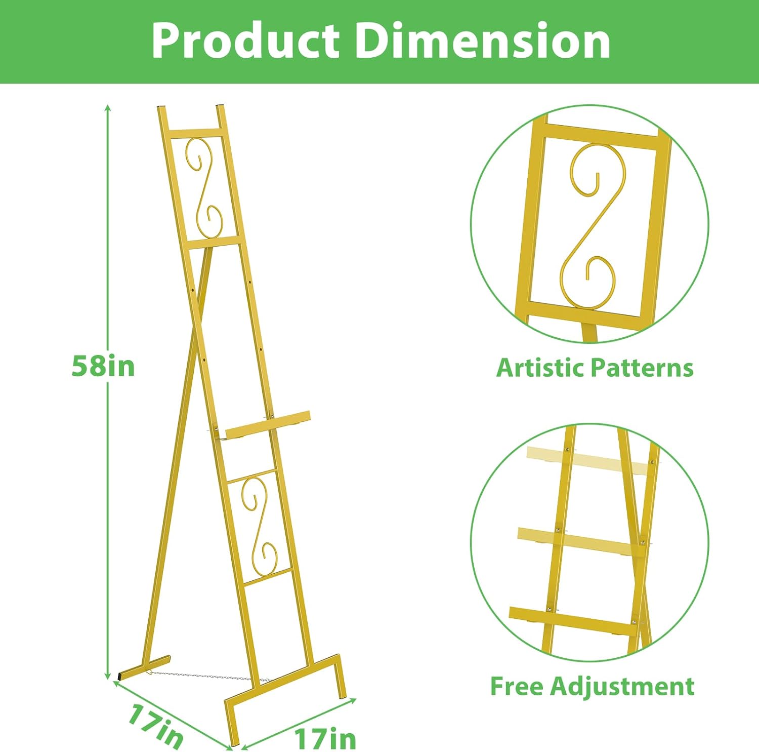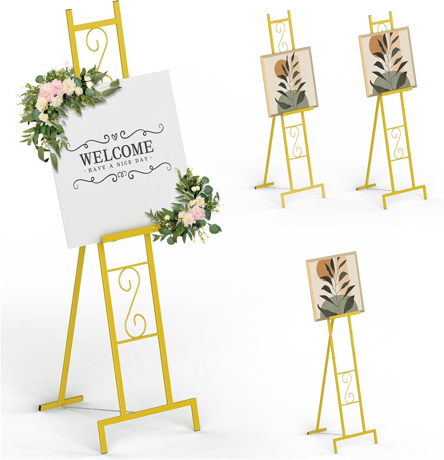- Sturdy Metal Construction & Secure Base - This durable metal easel stand features a bottom support chain and anti-slip rubber pads, ensuring reliable stability for sign stands, paintings, and displays of various sizes and weights.
