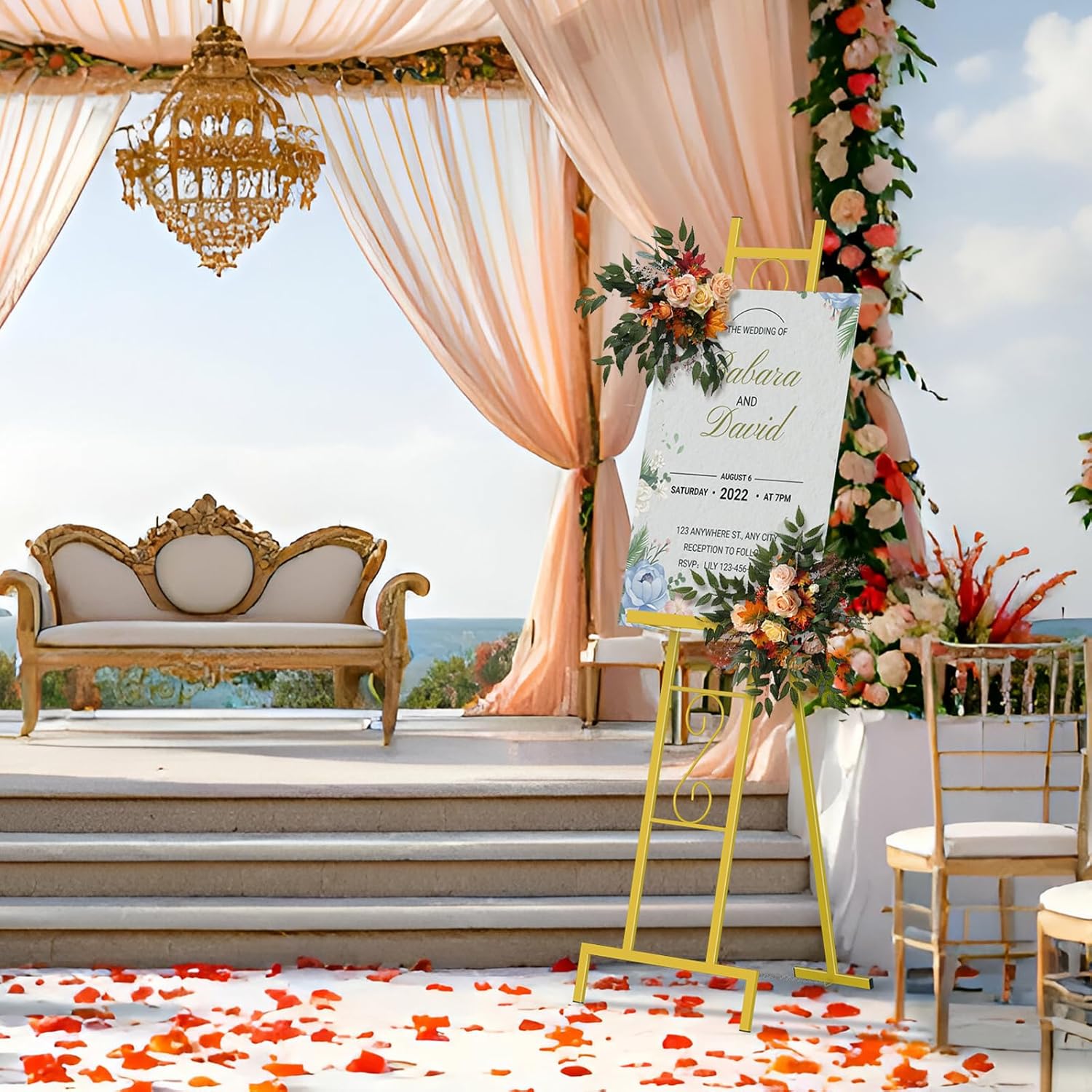 - Elegant Gold Finish - The sophisticated gold finish on this metal display stand boasts clean lines and bold angles, seamlessly complementing any modern decor to showcase your artwork or wedding sign holder with style.
