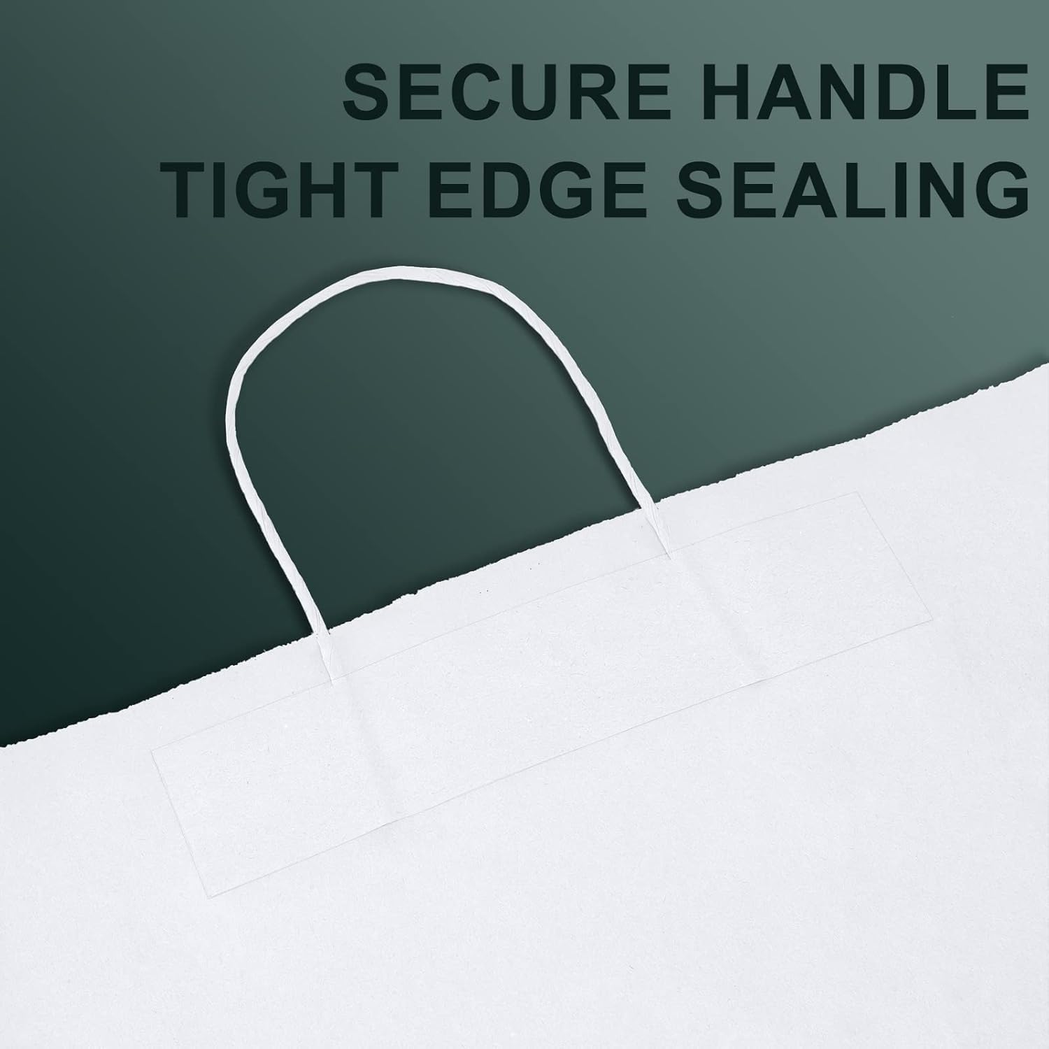 - Premium Kraft Paper Bags:These sturdy white paper bags are made of 100g weight paper, can holding up to 13 lbs. The paper bags with comfortable and strong handles,neat wavy edge prevent your hands being scratched,.The reinforced bottom also provides extra support while you carry items, ensuring that the contents will stay safe not fall through