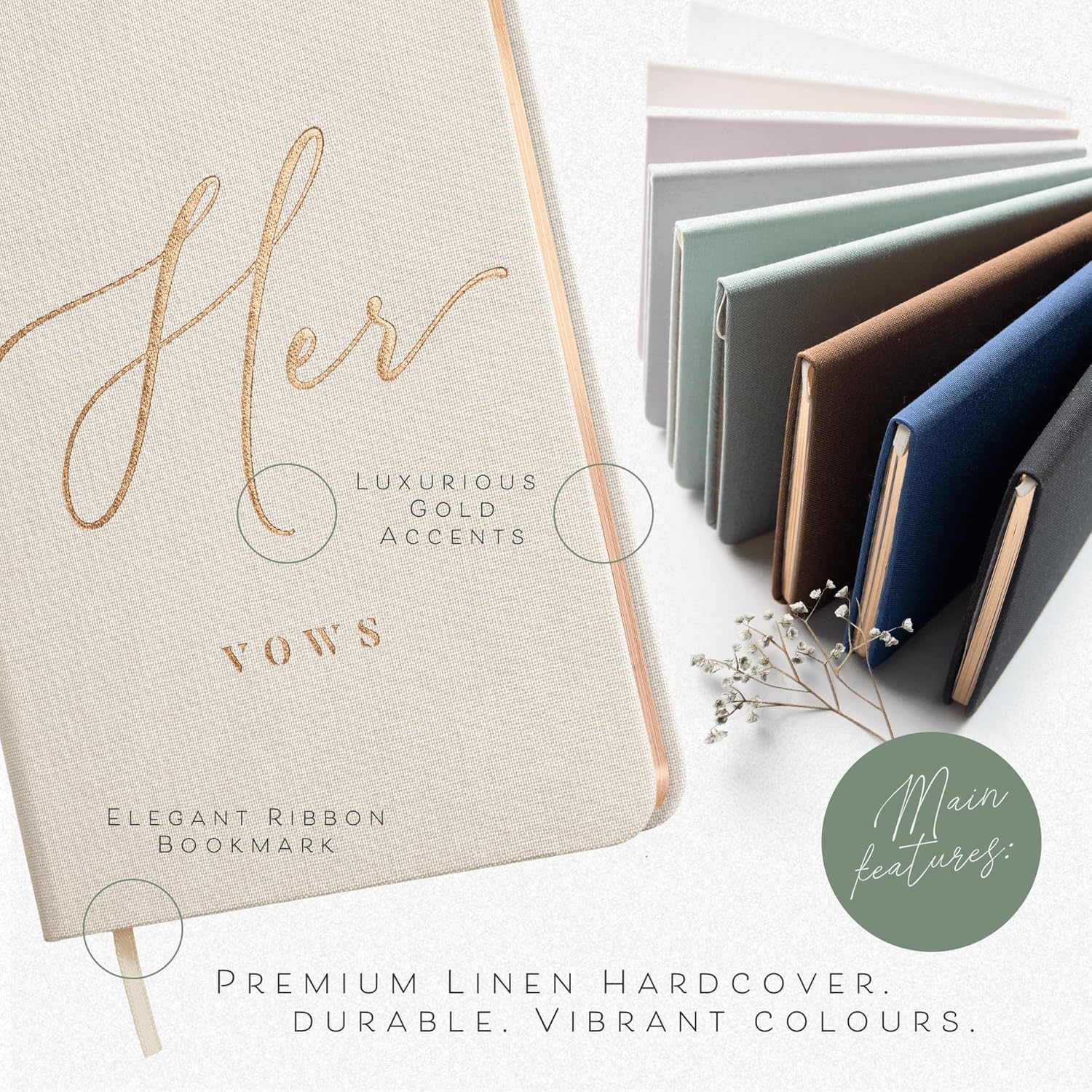 - PREMIUM LINEN COVER & COLOR COMBOS: Each set includes two his her vows book with a sophisticated linen-textured cover, available in six elegant color combinations: Black & Ivory, Navy & White, Sage & Mint, Grey & Blush, Terracotta & Ivory, Black & White. Ideal wedding accessories for your special day!