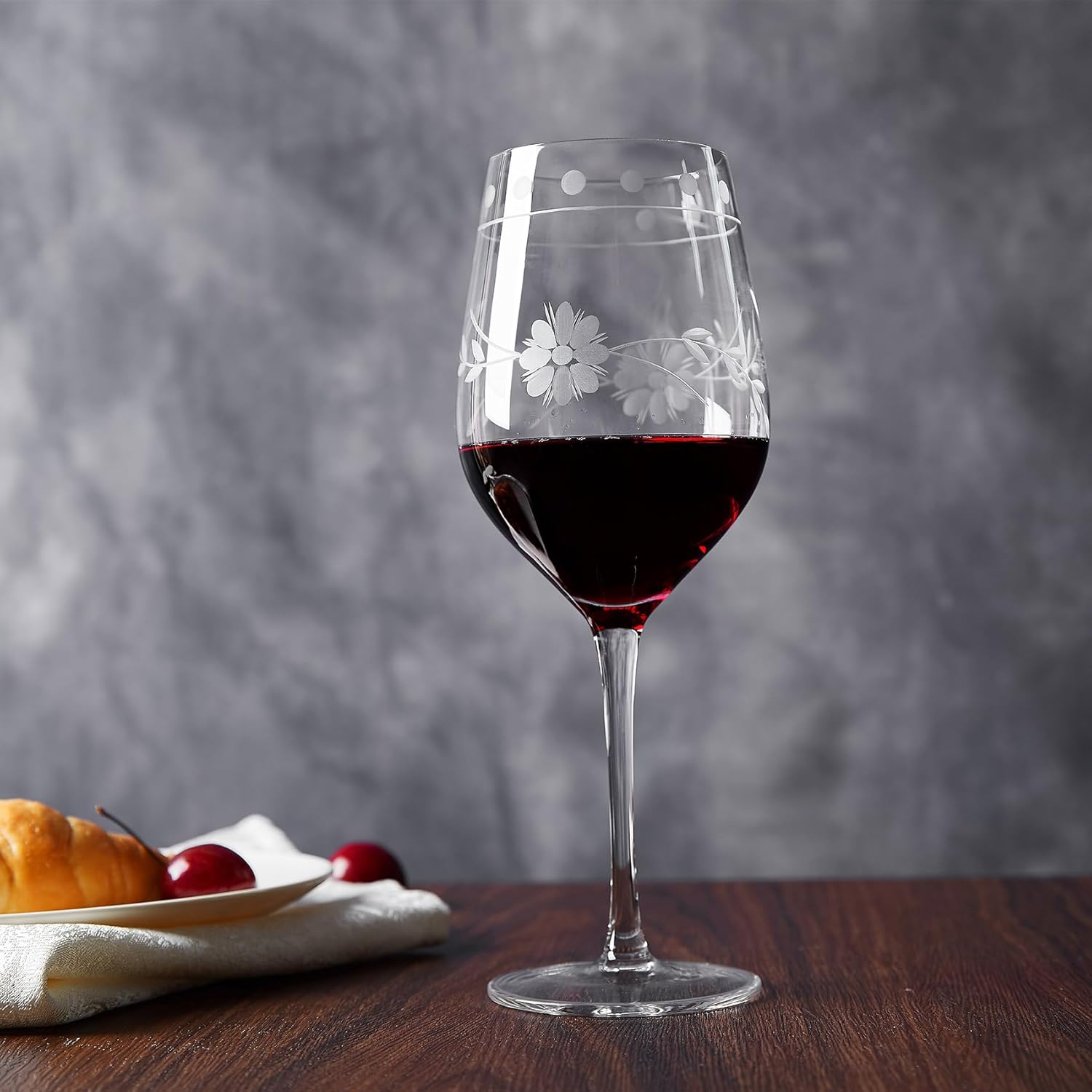 Premium Delight Wine Glasses Set of 4,15 oz – Hand-Blown with Etched Long Stem, Classic Glassware for Weddings, Dinners, and Holiday Gifting (Red Wine Glass)