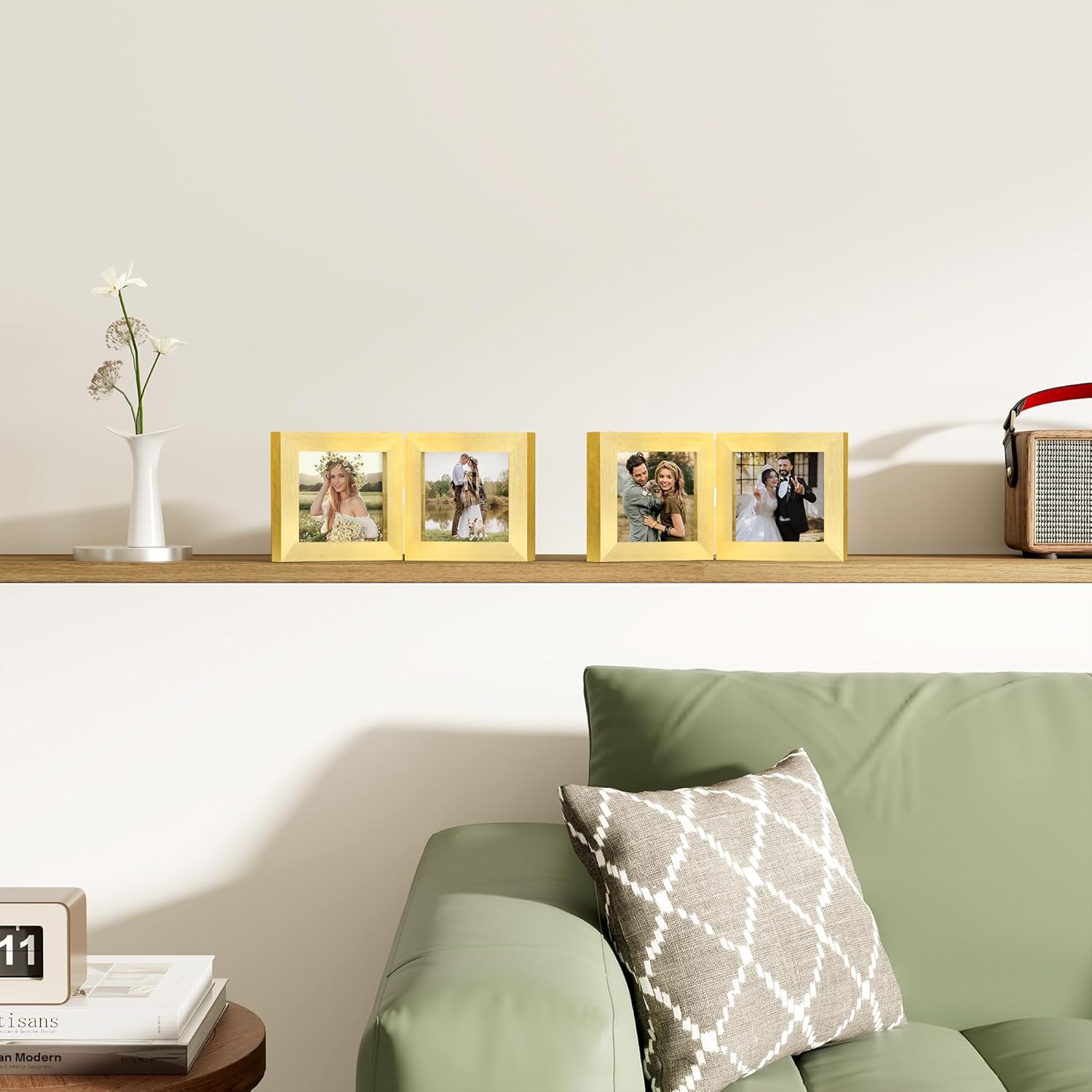 - Elegant Design: Attractive 4x4 double picture frame vertical stands on desktop or tabletop, great for displaying special moments