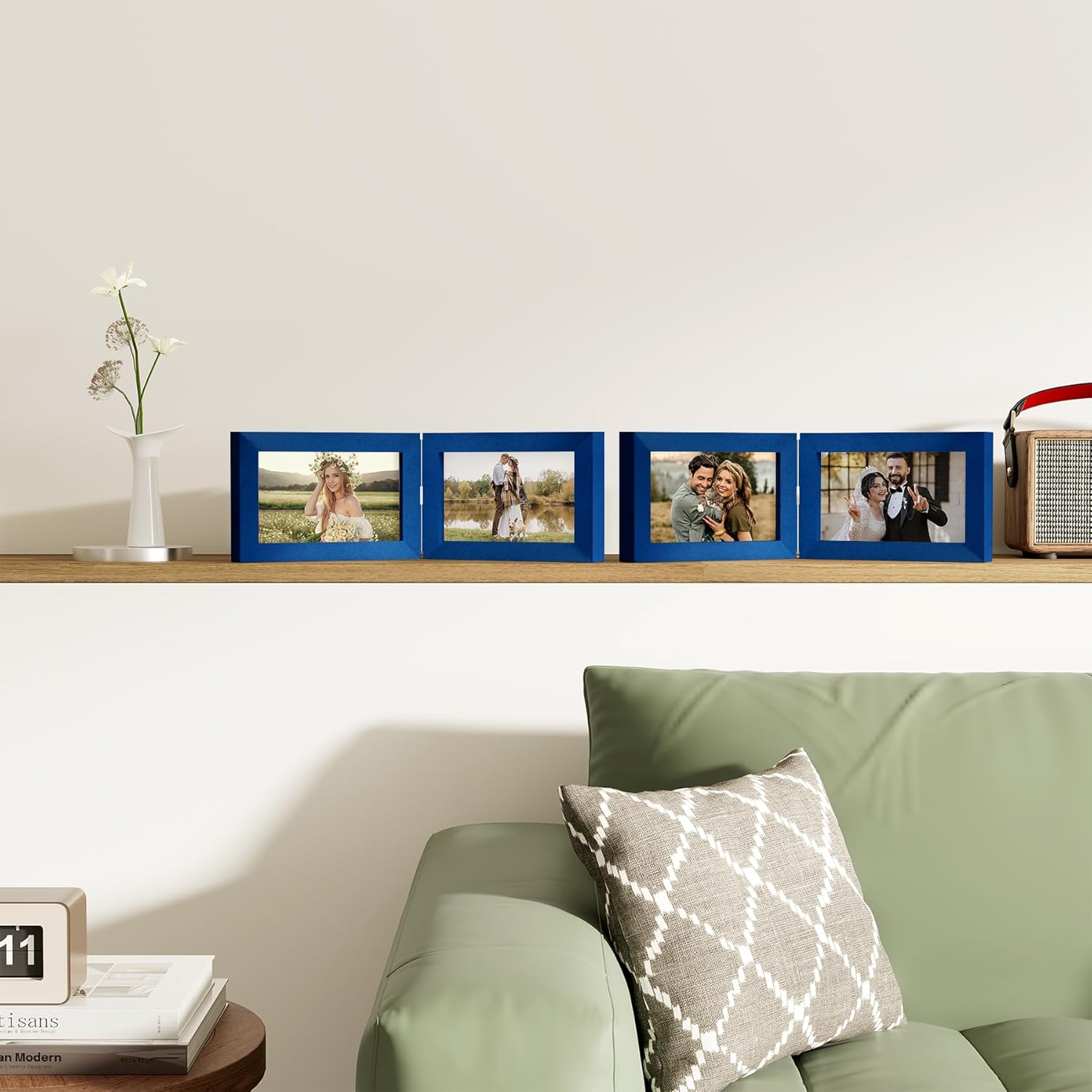 decorUhome Double 6x4 Picture Frame Horizontal, Engineered Wood Bifold Photo Frame with Plexiglass for Tabletop Display, 6x4, Royal Blue