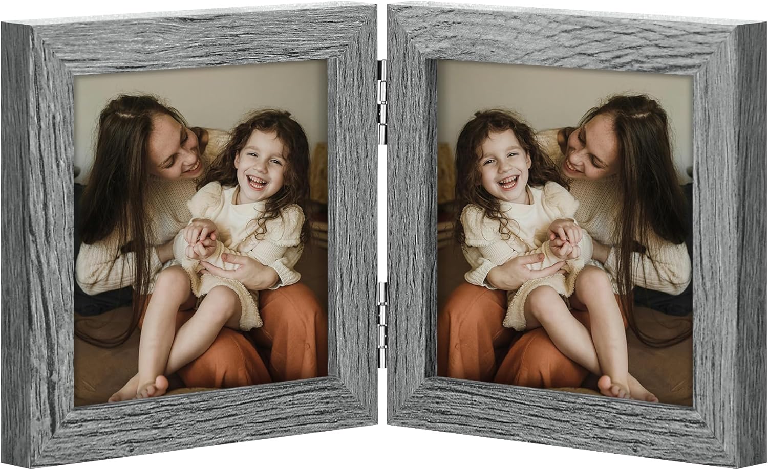 decorUhome Double 4x4 Picture Frame Vertical, Engineered Wood Bifold Photo Frame with Plexiglass for Tabletop Display, 4x4, Grey