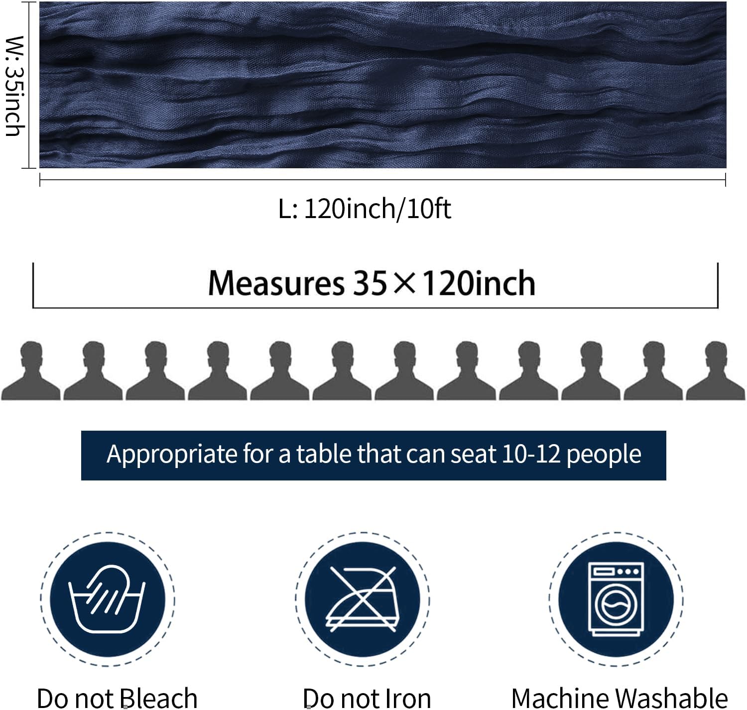 - 🎉【Care Instructions】These pretty navy table runners are recommended for hand wash in cold water with mild detergent, or machine wash in the gentle cycle with a laundry bag; In order to maintain wrinkled texture, please do not iron or use hot water, lay flat or hang dry, which are better for keeping these navy cheesecloth table runner 6 pack for a long time use. Please kindly noted that there might be color variation due to screen resolution and limitations in photography.