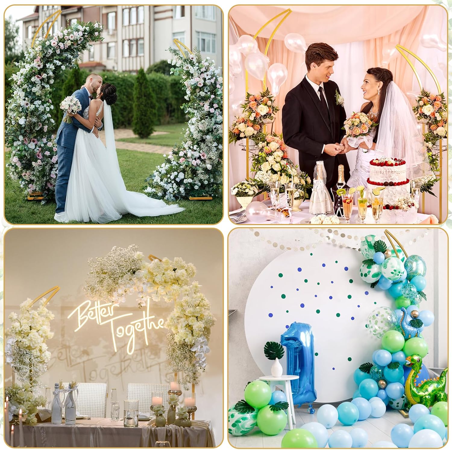 - 【 Large Wedding Metal Arches】:gold and white Balloon Stand, suitable for commercial Photography and personal party Reusable Arch Backdrop Measuring 8.2ft H x 6.9ft H,6.9ft H x 5.9ft H, A variety of colors and sizes for you to choose this arch can be decorated with flowers, lights, or drapes to match any event theme. making it ideal for photography, weddings, and event decora.