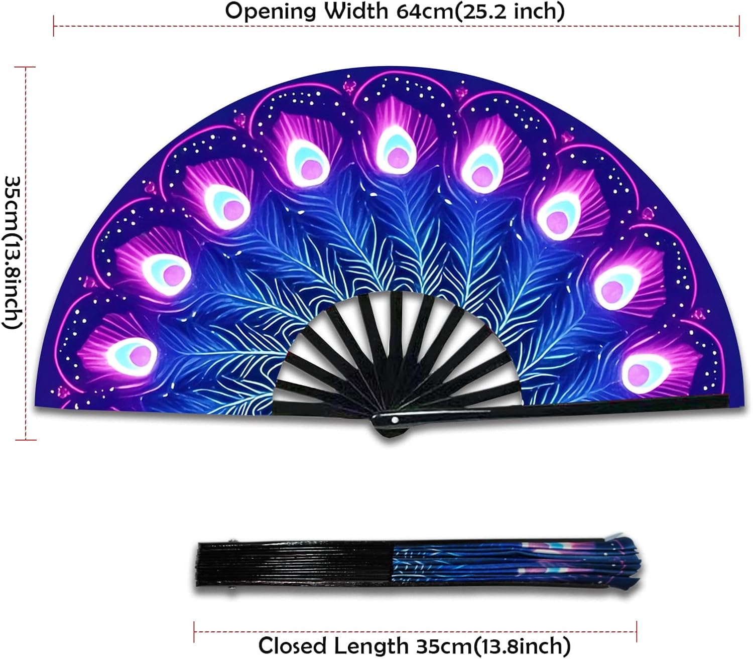 - Glow-in-the-Dark -- Our clack fan comes with a special glow-in-the-dark feature under UV light, making it perfect for nighttime events. Plus, the large folding fan opens and closes smoothly with one hand and produces a satisfying clack sound, ensuring you make an impact on the dance floor
