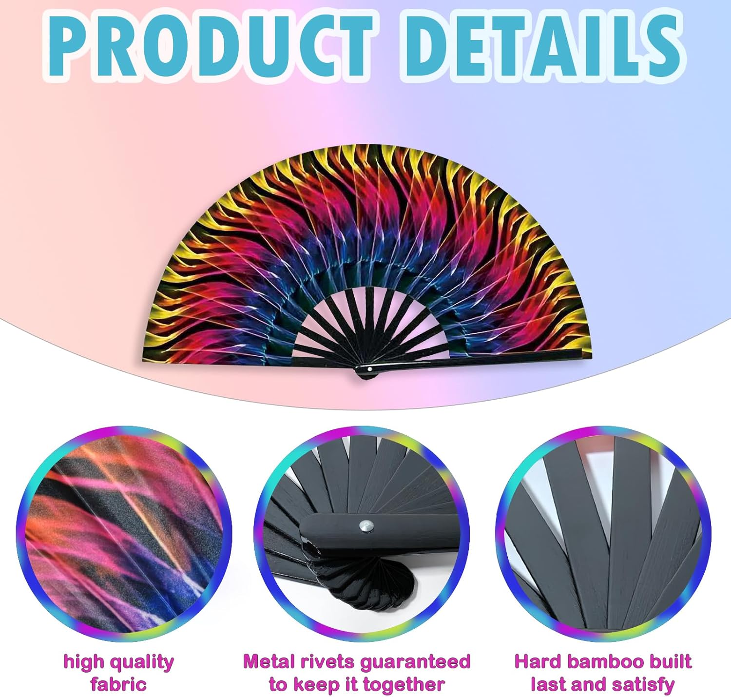 - Vibrant and Unique Designs-- Each rave fan features eye-catching designs that make it a standout accessory. The bright colors and unique designs add personality to your look and are sure to attract attention, making it an excellent addition to your rave gear or dance ensemble
