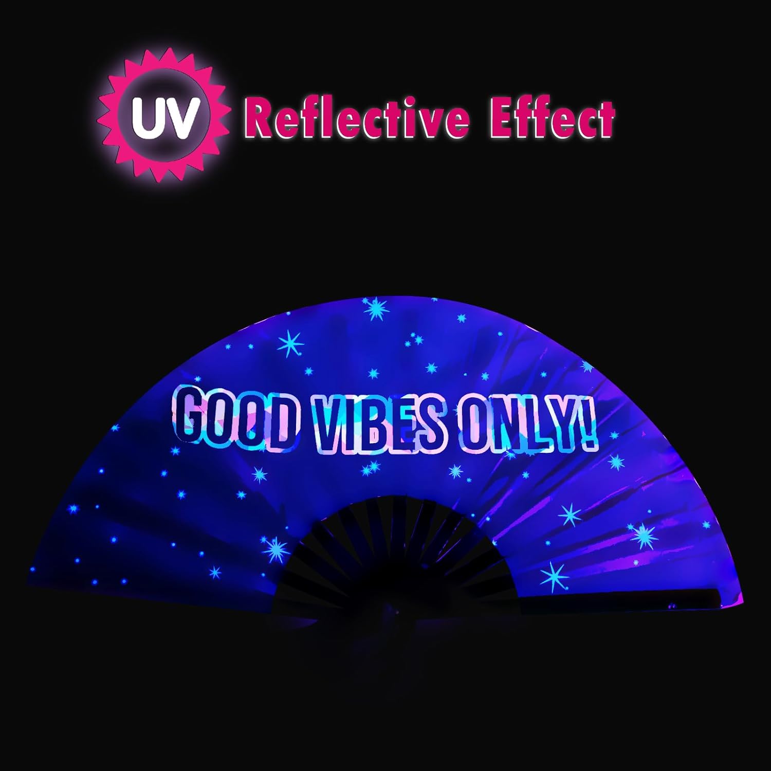 - Perfect Gift for Festival Lovers-- This UV glow fan is a thoughtful present for ravers, dancers, and partygoers—keeping them cool at EDM shows, Pride parades, and summer festivals. Stylish, practical, and full of vibe