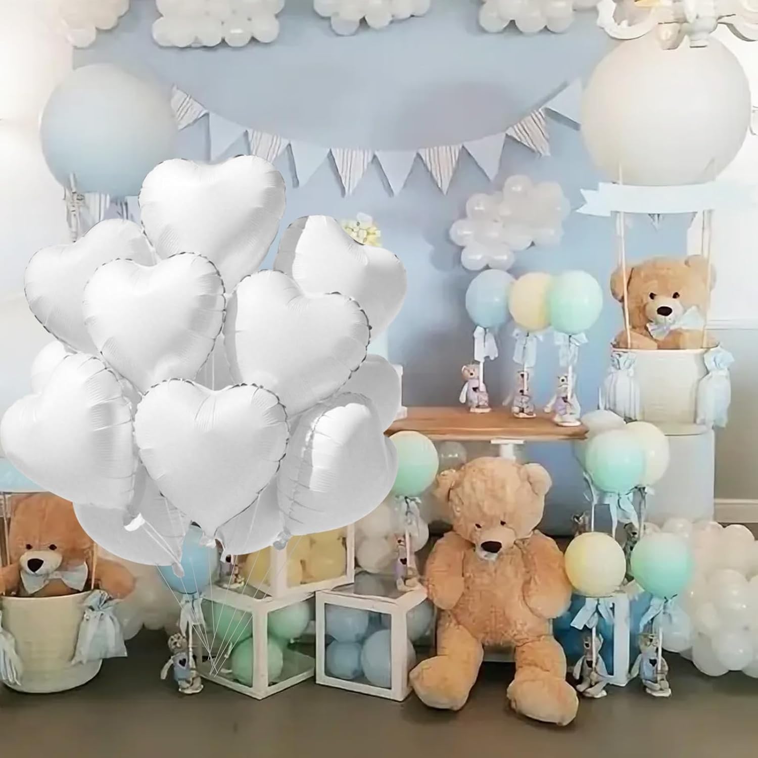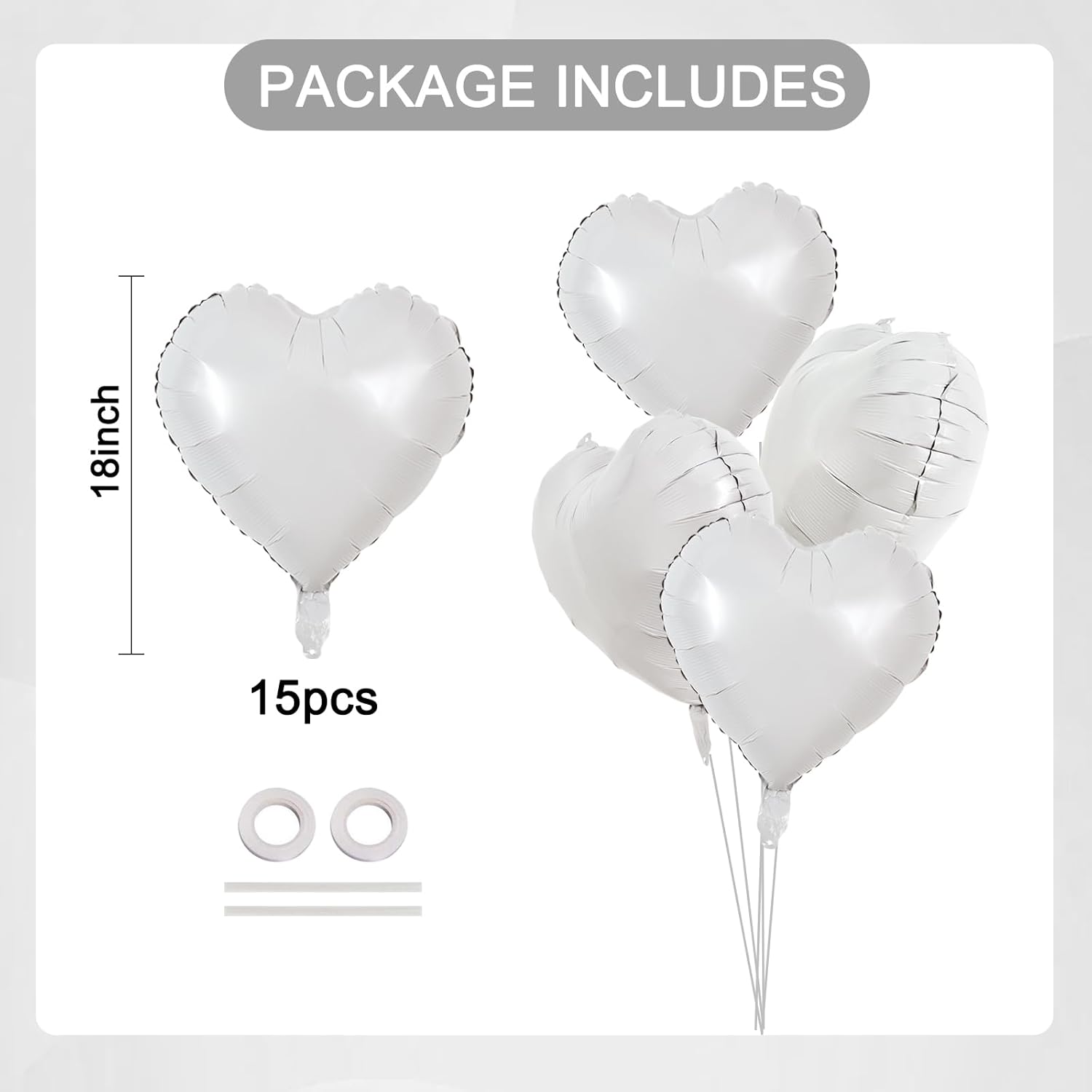 TONIFUL 15Pcs 18 Inch White Heart Balloons White Heart Shape Foil Mylar Balloons Decoration for Birthday Valentine's Day Wedding Bridal Shower Anniversary Engagement Party Supplies
