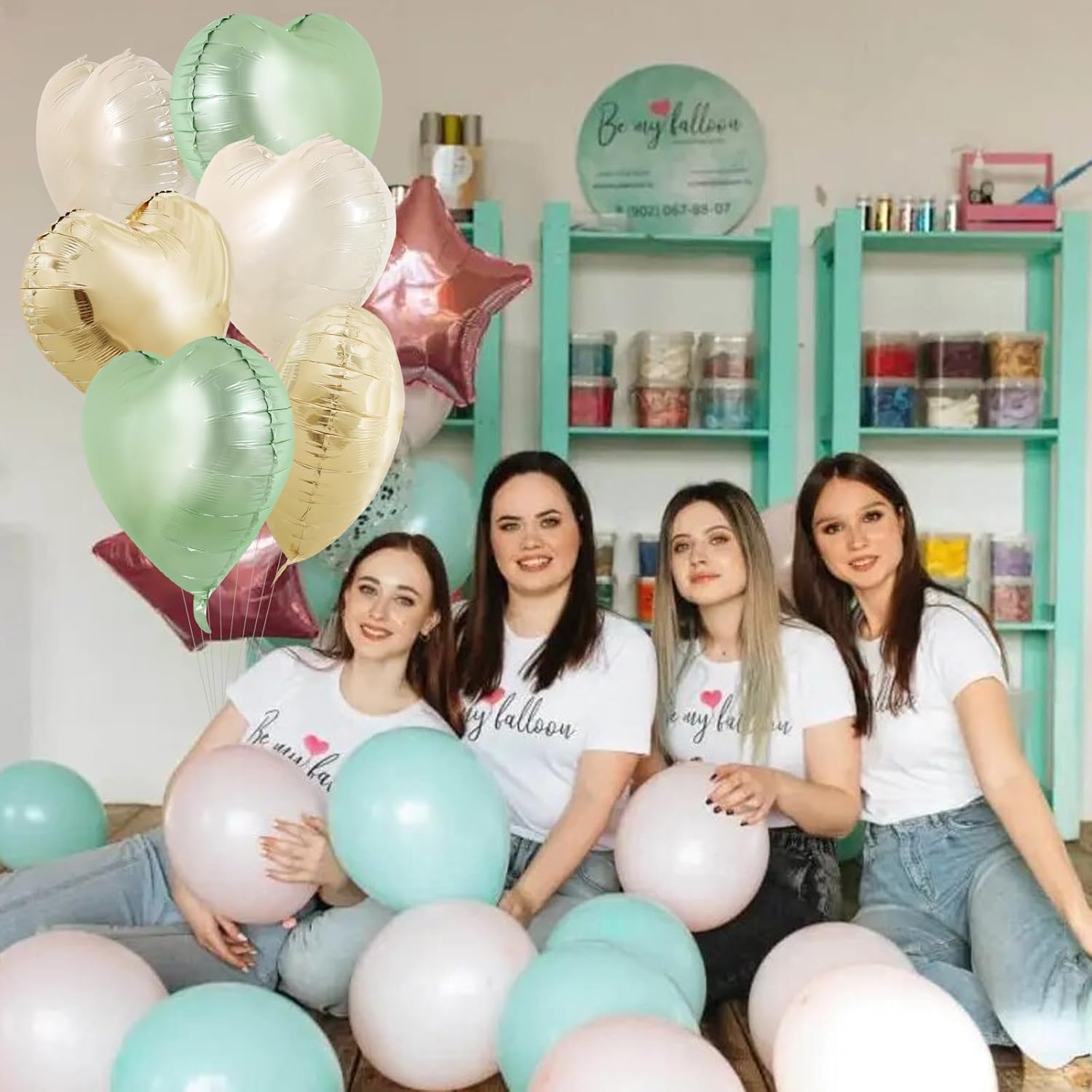 TONIFUL 15Pcs Sage Green Gold Heart Balloons 18 Inch Green Cream White Heart Shape Foil Mylar Balloons Decoration for Jungle Woodland Birthday Party Baby Shower Supplies