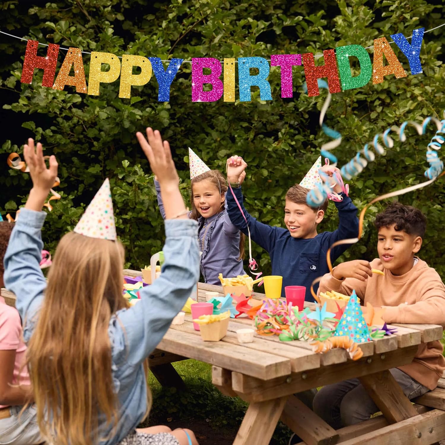 - QUALITY GUARANTEED: We are made of high quality paper with glittery, bright colors that sparkle in the light.Letters are durable and not easily moved. It's perfect for your party decorations on this special day