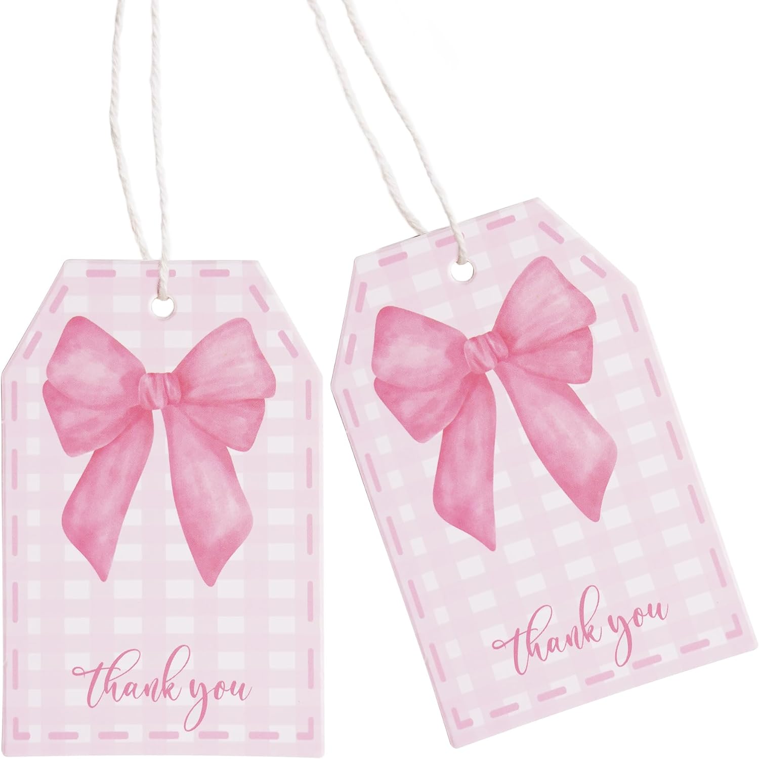 - Decorate Your Gift: This set includes 100 pcs pink bow thank you gift tags and 65 feet long white string, Big coquette pink bow with buffalo plaid design,Make your gift stand out with this beautiful and luxurious gift tag.