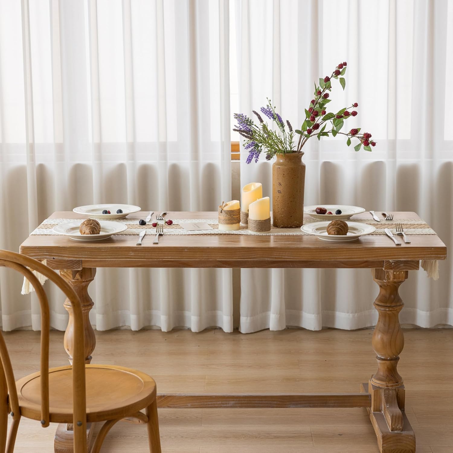 - 【Superior Quality】Crafted from premium Linen Blend fabric,the edges are handmade macrame fringed.This top-notch material is incredibly breathable, and long-lasting, bringing a delightful vintage, rustic, and aesthetic charm to your table.