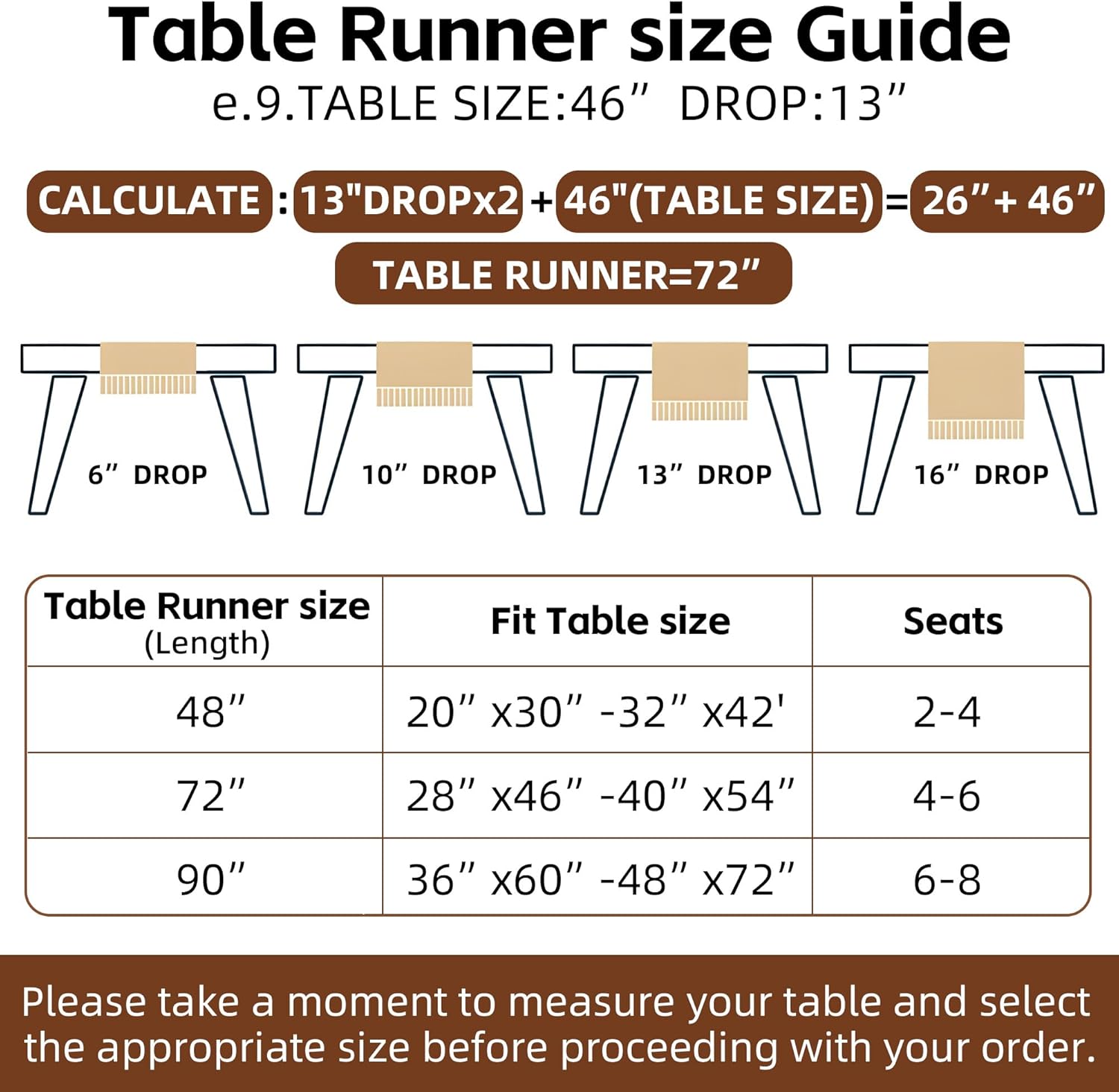 - 【Package Includes】1 Table runner( 12x 90inch), appropriate for a table that can seat 6-8 people, better match your table and give you a delightful dining experience.