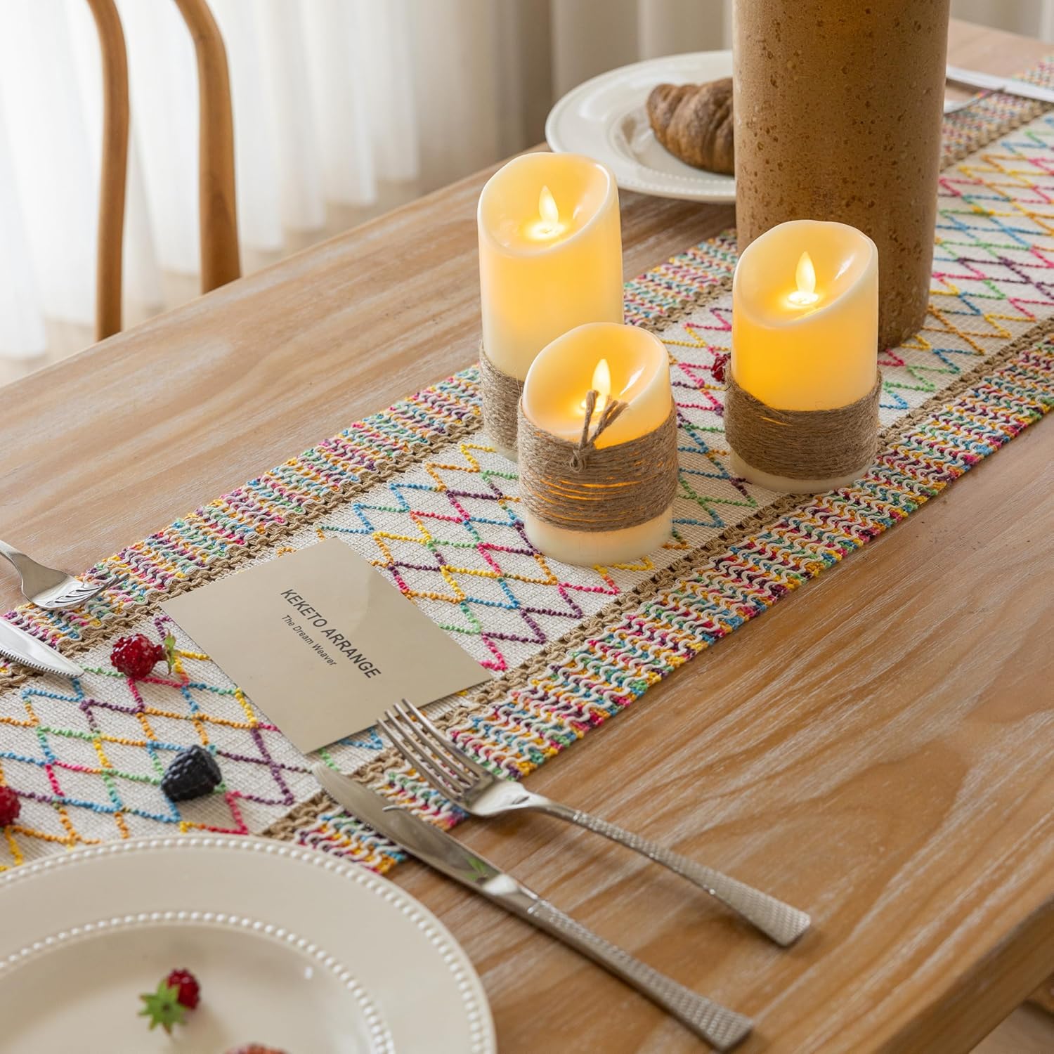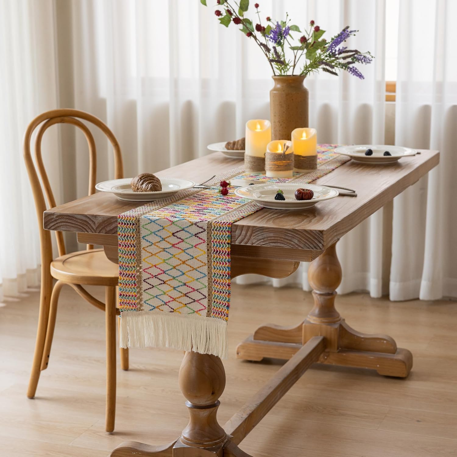 Boho Table Runner Colorful for Home Decor 12x90 Inches Farmhouse Macrame Burlap Jute Rustic Dining Kitchen Centerpiece Bohemian Decor French Country Baby Bridal Shower Decorations