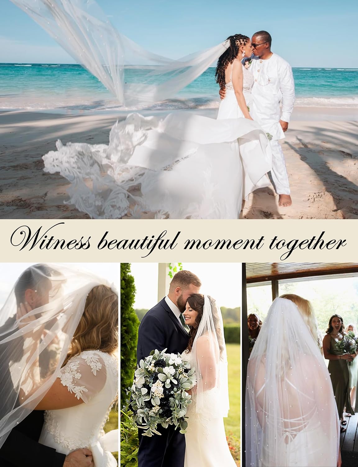 - Pearl Bridal Veil: These pearls add elegant sparkle to this monochrome veil, highlight the bride's elegant and charming temperament. Choose from three lengths: 39" (Fingertip), 79" (Chapel), or 118" (Cathedral)—all 59" wide for dramatic flow. Perfect for outdoor weddings, photo shoots, or grand cathedral ceremonies.