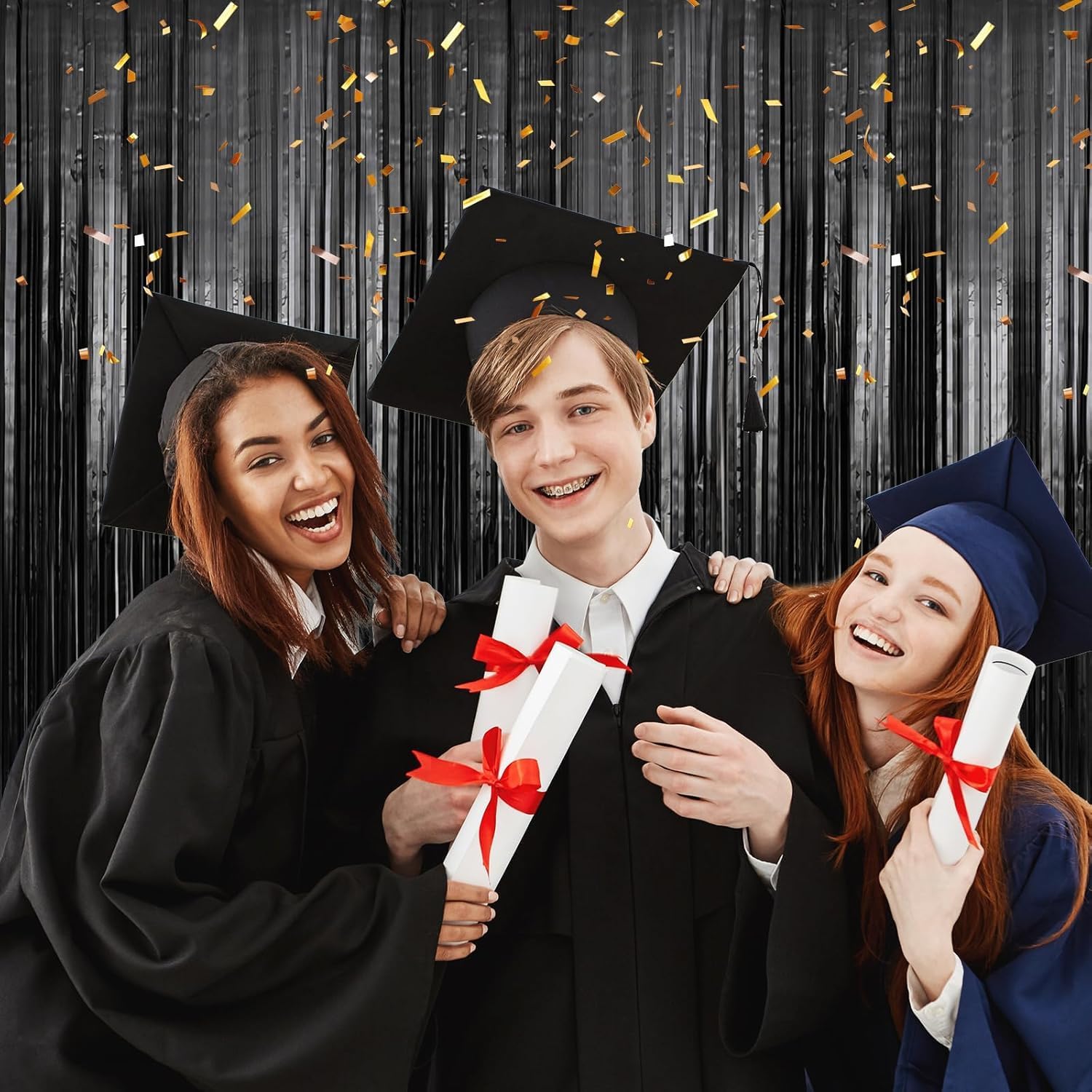 6 Pack Black Foil Fringe Curtains Streamers Party Decorations 3.3 x 8.2 ft, Black Tinsel Curtain Fringe Backdrop for Parties, Door Fringe Birthday Streamers, Photo Booth Backdrops, Party Decor