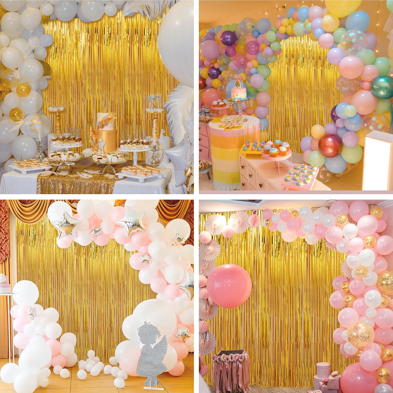 6 Pack Gold Foil Fringe Curtains Streamers Party Decorations 3.3 x 8.2 ft, Gold Tinsel Curtain Fringe Backdrop for Parties, Door Fringe Birthday Streamers, Photo Booth Backdrops, Party Decor