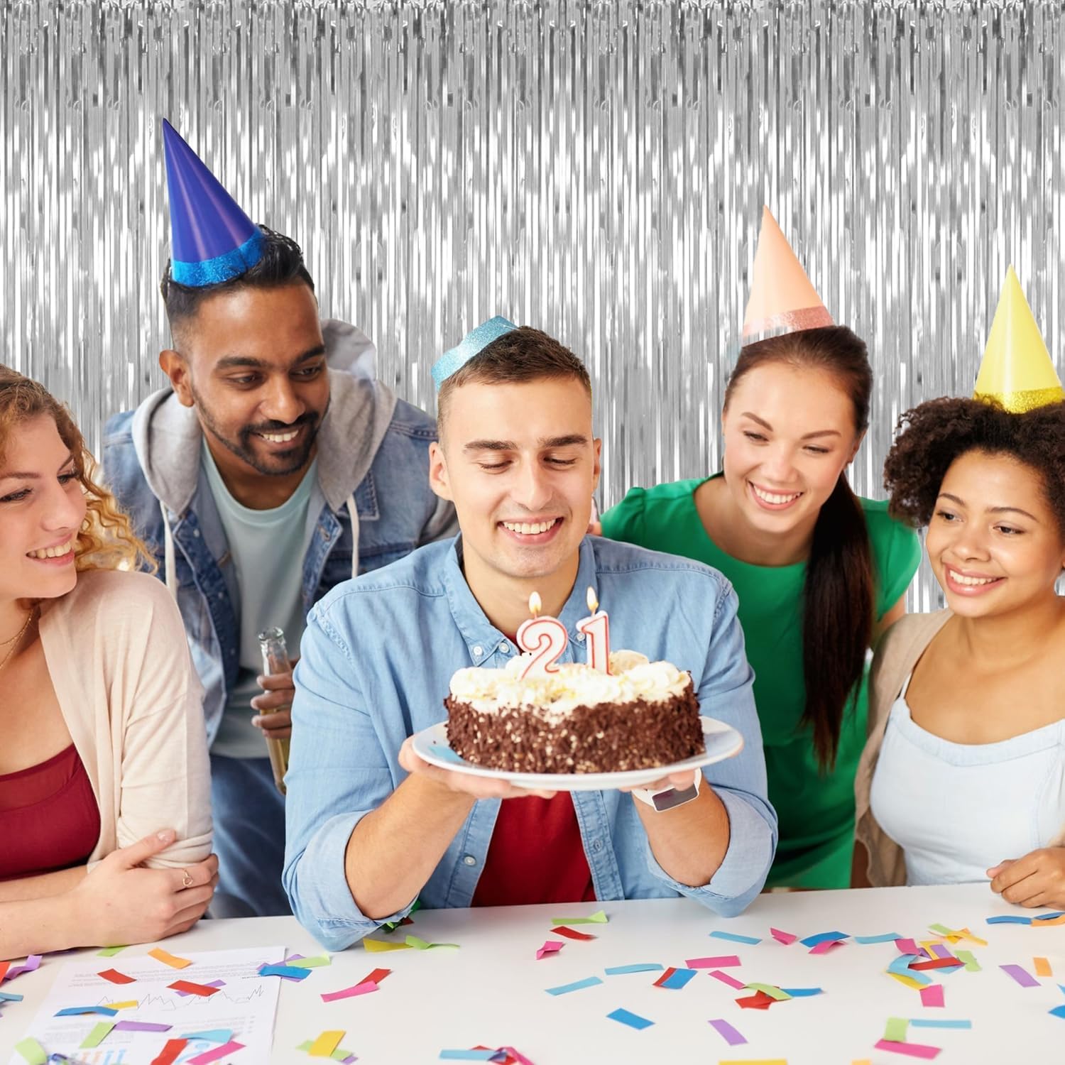 - Material & Reusable :Make your silver party curtain stand out as a silver tinsel backdrop. This silver party streamers will help to add a sparkle to silver party decorations. This silver streamer backdrop is made from grade 'A' quality material, durable and won't easily strip down. You can use silver streamers as disco backdrop, graduation decorations class of 2025, and bachelorette party backdrop. Create 2025 graduation decorations with our silver party backdrop or silver tassel backdrop.